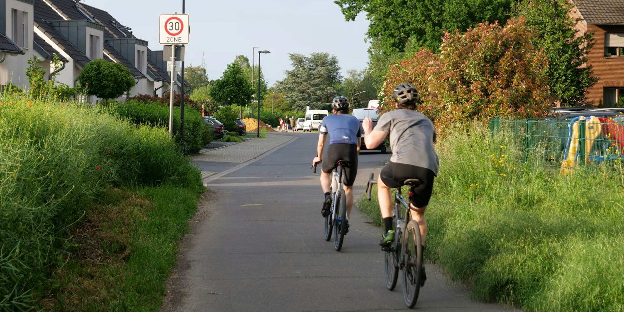 Zwei Radfahrer an der Decksteiner Straße am Ortseingang von Stotzheim.