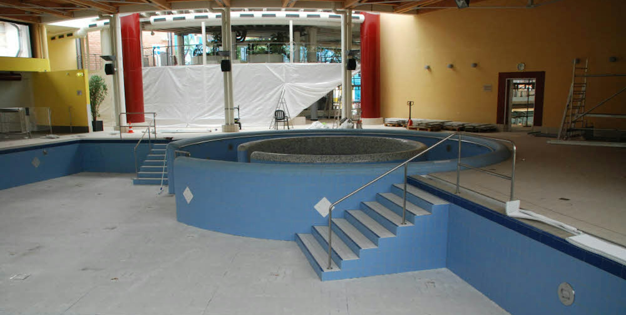Komplett entfernt wurden die Bodenfliesen im Erlebnisbecken des Familienbads. Nun muss der Kleber entfernt werden.