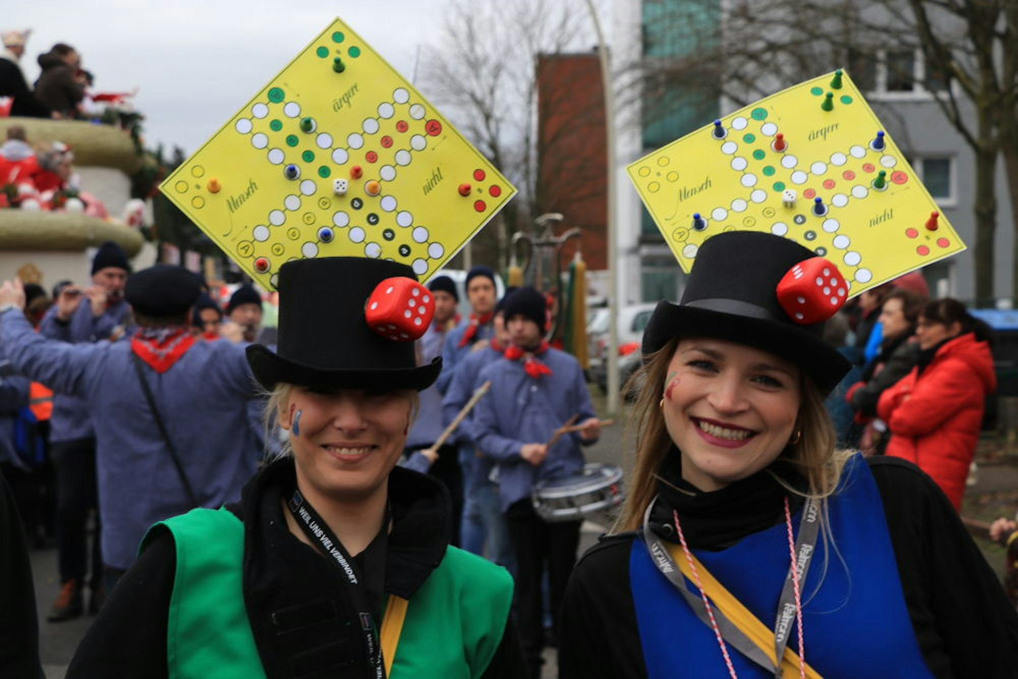 Pünktlich gab Zugleiter Günter Dreschmann das Startkommando, und der aus 33 Gruppen bestehende närrische Lindwurm setzte sich in Bewegung. Viele bekannte Gruppen wie die Schöne Möhne als Schneemänner oder die Jammertaler in ihren „Mensch-ärgere-dich-nicht-Kostümen“ sorgten für ein farbenprächtiges Bild.