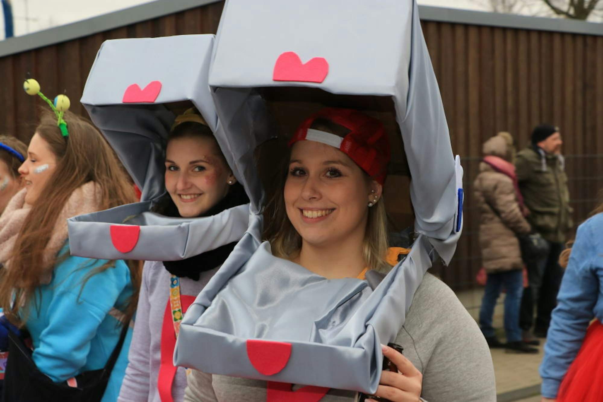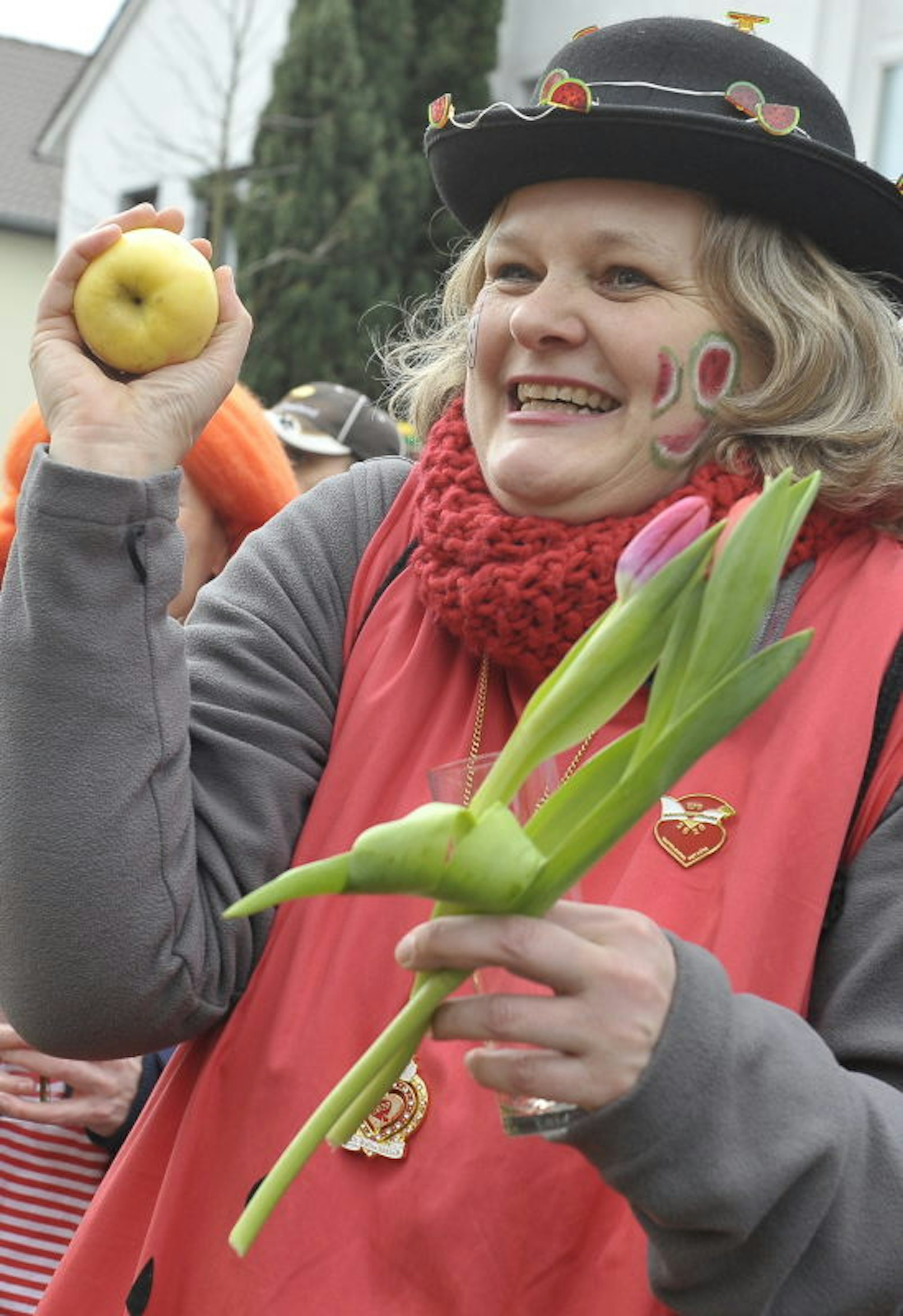 Vor dem Haus der Familie Papenheim hatten es sich die Karnevalsfreunde des Seniorenheimes St. Elisabeth auf Bänken gemütlich gemacht und kassierten jede Menge Strüßjer, und die Frauen der Paradiesvögel begaben sich mit Segelschiffen auf dem Kopf auf hohe See.