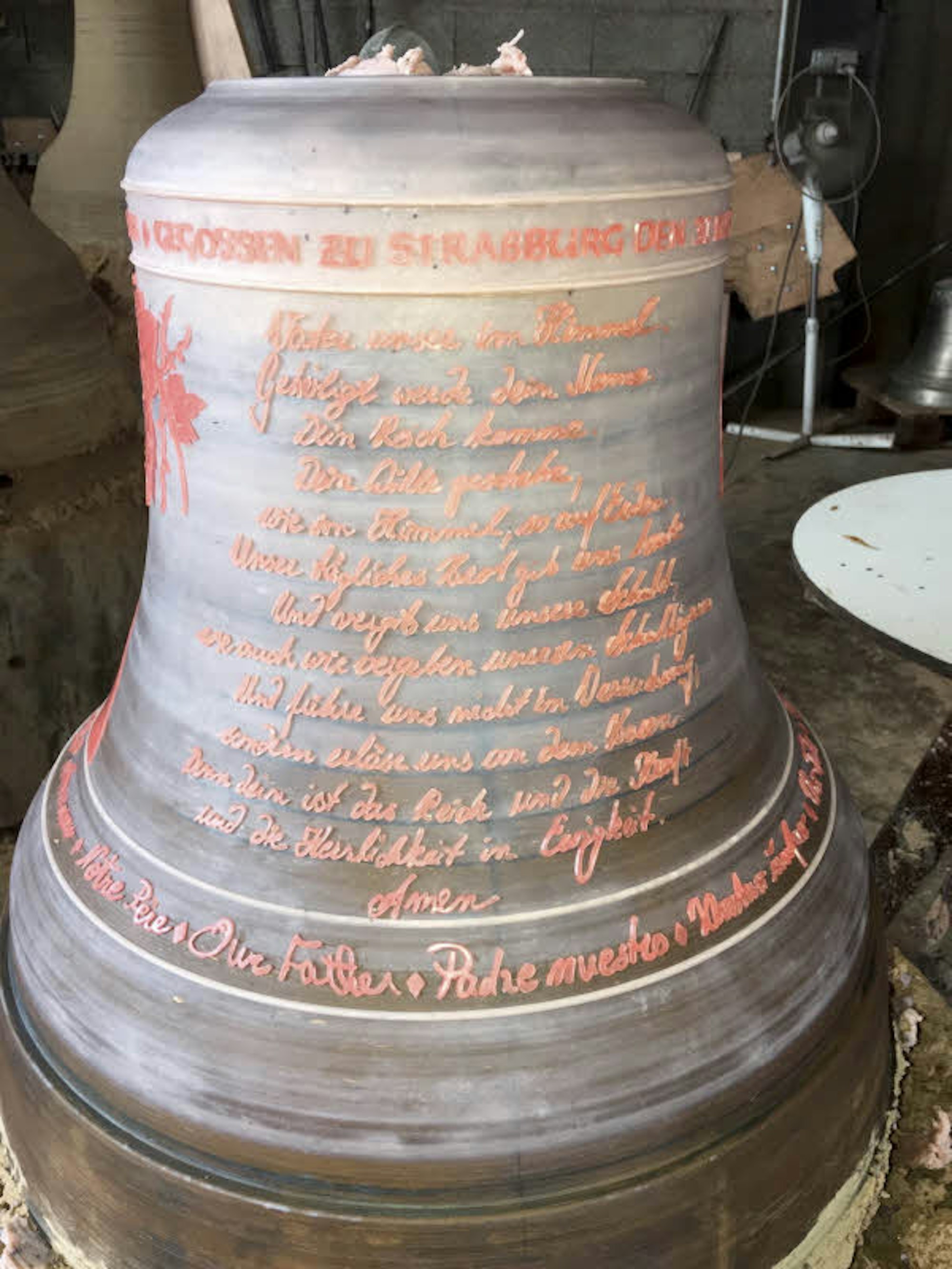 Die Gussform zeigt das Vaterunser in verschiedenen Sprachen.