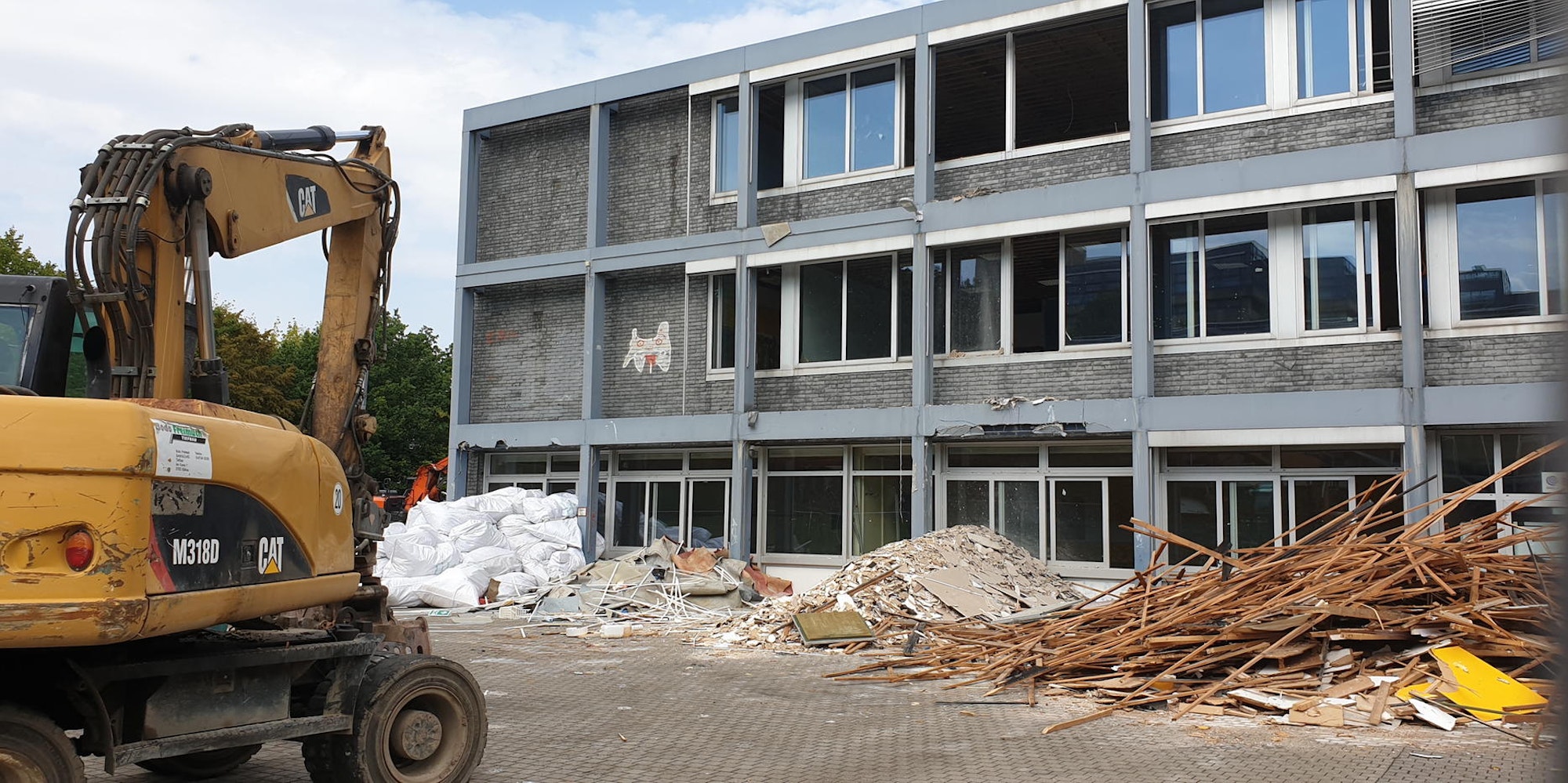 Entkernt wird derzeit der Bauteil C des Ernst-Mach-Gymnasiums. Im Oktober wird er abgerissen und später durch einen Neubau ersetzt.