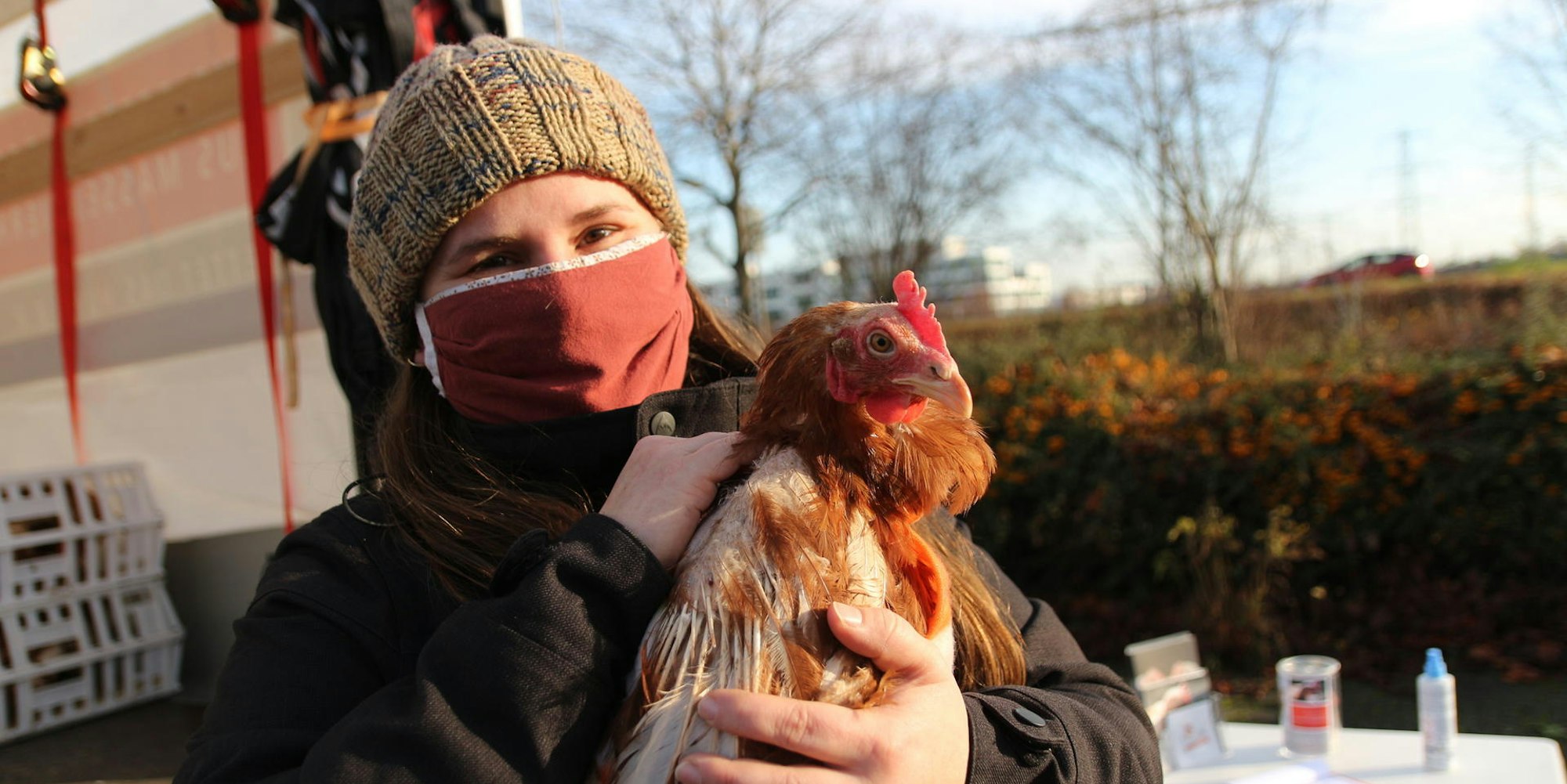 Zusammen mit ihrem Freund Lukas ist die 28-Jährige zu einem kooperierenden Legebetrieb ins Sauerland gefahren, hat 350 „ausgediente“ Legehennen eingesammelt und ihnen damit das Leben gerettet. „Sie legen nicht mehr so viele Eier und wären sonst im Schlachthof gelandet“, erklärt sie.