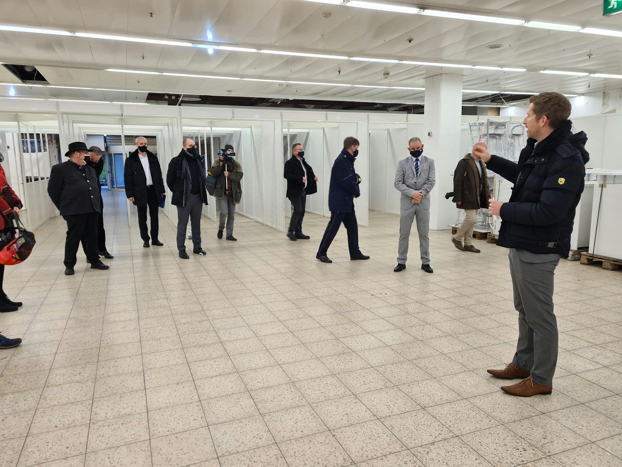 Dr. Andreas Koch vom Kreisbauamt erläutert den Stand der Arbeiten am Impfzentrum des Kreises im früheren Real-Markt im Hürth-Park.