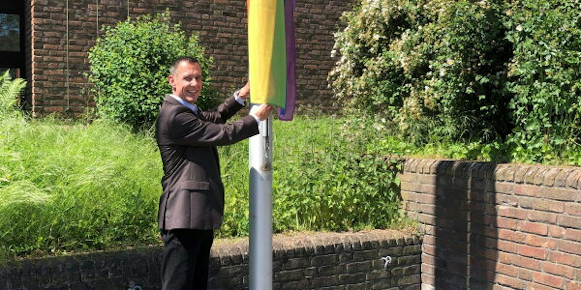 Dieter Spürck hisste die Regenbogenflagge.