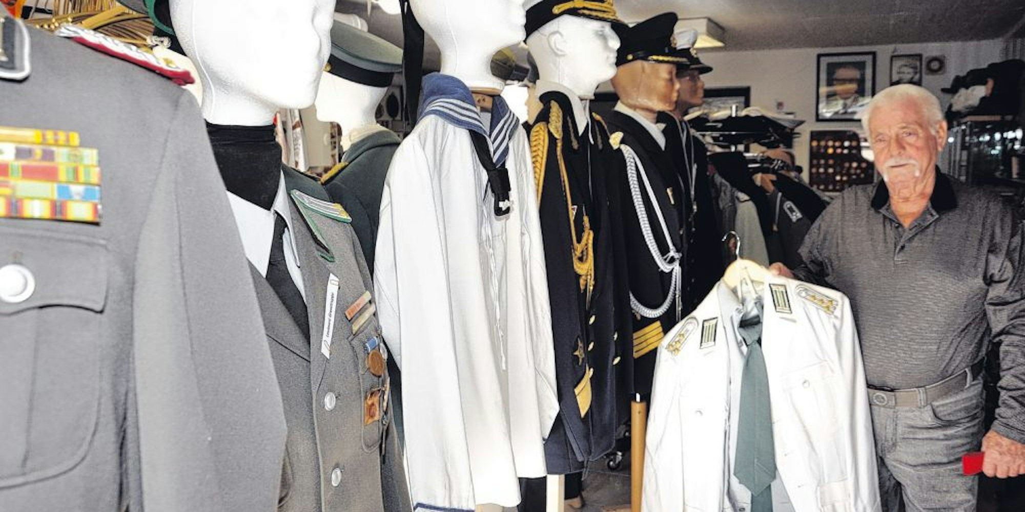Kerpen-Buir – Mehr als 100 Uniformen von Heer, Marine, Luftwaffe, Grenz- und Volkspolizei, vom leichten Gala-Sakko bis zum schweren Schaffellmantel, hängen an Kleiderständern und Schaufensterpuppen, daneben Orden, Ehrenzeichen und anderen Erinnerungsstücken, die in Vitrinen und Regalen ausgestellt sind. Armin Schmitt stellt in seinem kleinen Garagenmuseum ein Stück DDR-Geschichte aus.
