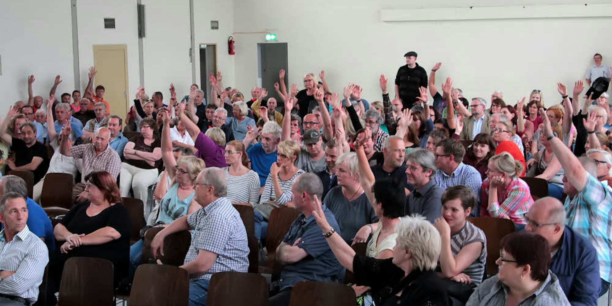 Sehr viele Hände gingen bei der Frage hoch ,wer gegen den Bau von zwei Flüchtlingswohnhäusern am Friedhofsweg sei.