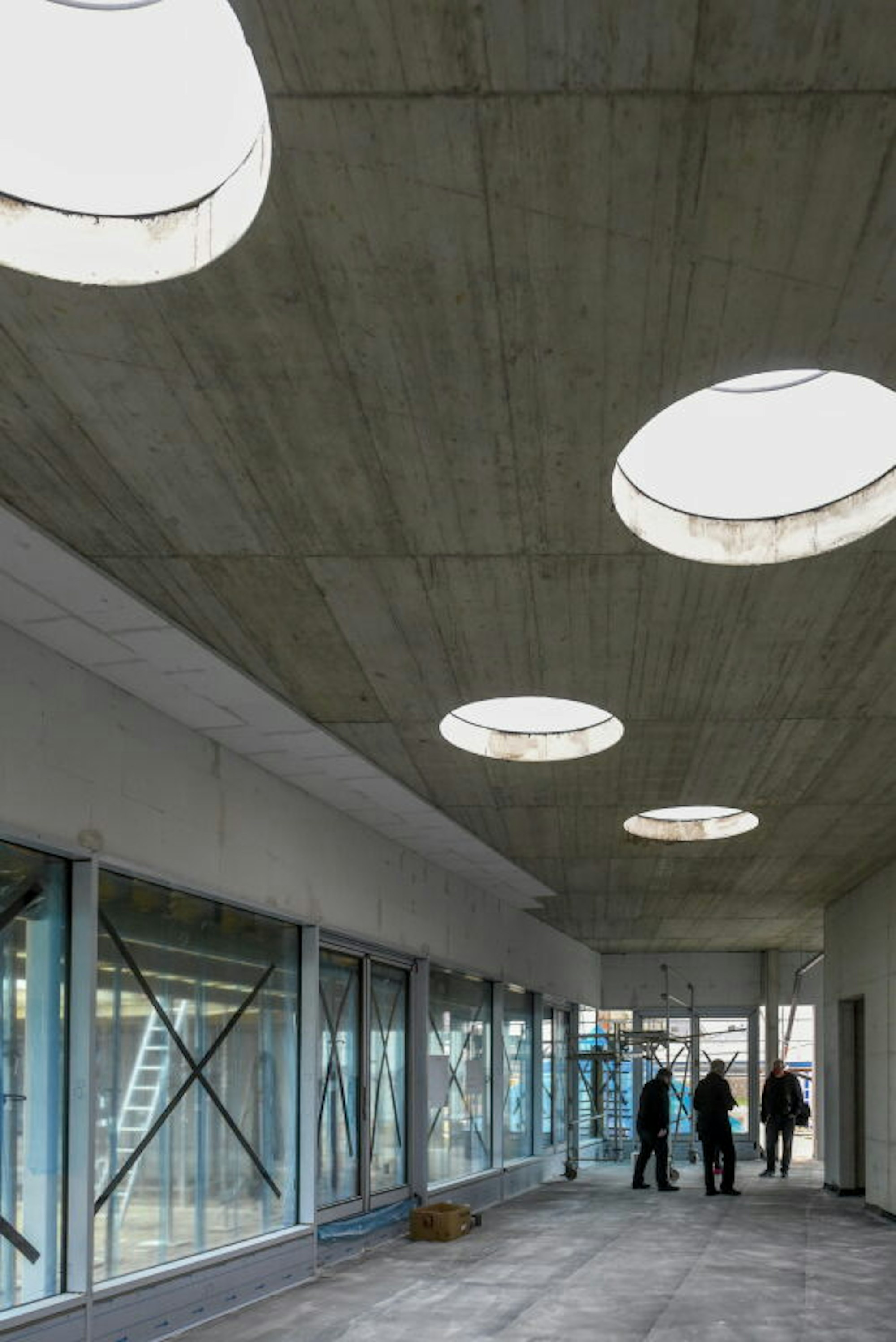 Ortsvorsteherin Lonie Lambertz freute sich über die planmäßige Ausführung des zeitgemäß gestalteten Ensembles: der Coronavirus habe zwar die Festivitäten ausgebremst, nicht aber den Baufortschritt, im August nächsten Jahres seien voraussichtlich die Arbeiten abgeschlossen.
