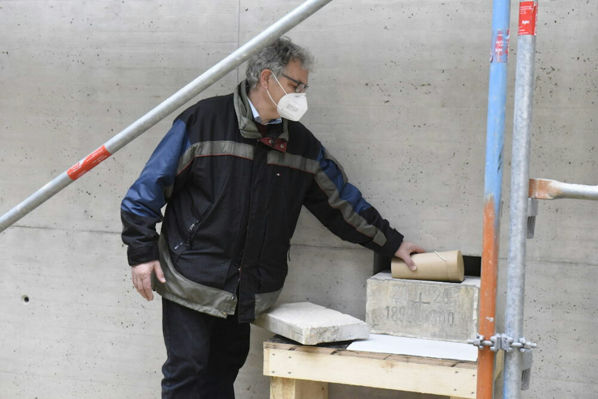 Erich Mysliewietz legte die Beigaben in den Grundstein.