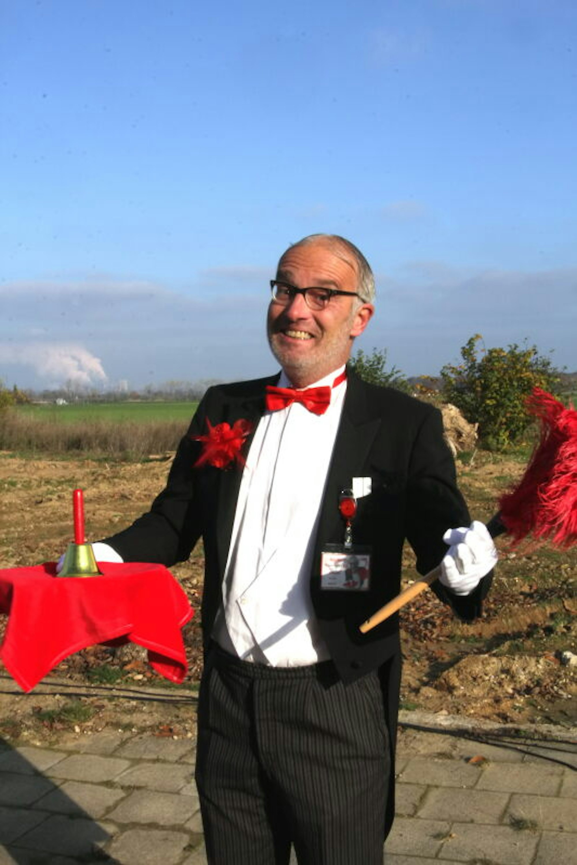 Der Kölner Comedian Christoph Boland alias Butler Bernhardt lässt sich die gute Laune in schweren Zeiten nicht verderben.