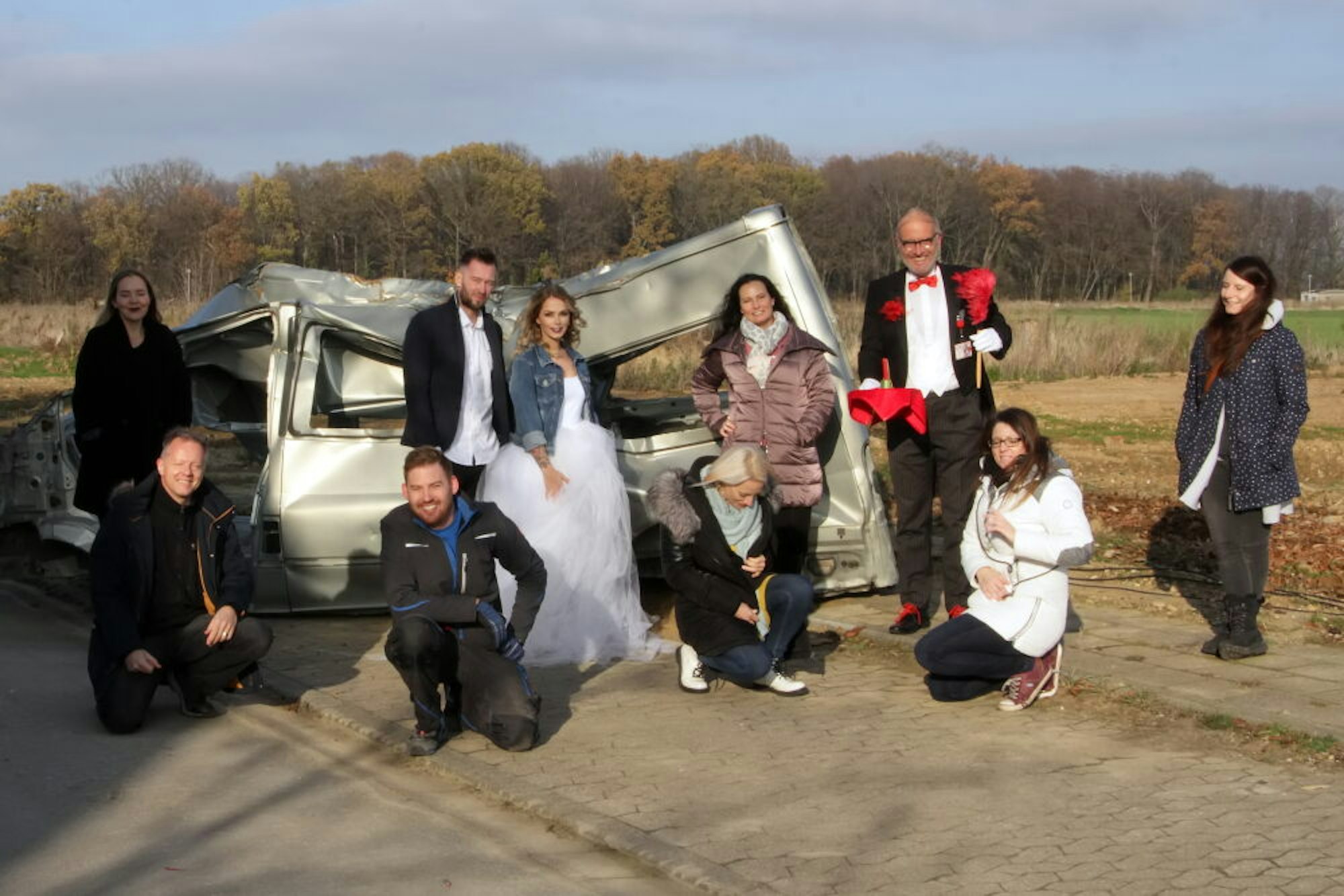 Trotz allem war gestern am Set gute Stimmung angesagt. Mit viel Liebe zum Detail inszenierten die Hochzeiter ihre bewusst etwas morbide gestaltete Themen-Hochzeit am Rande des (Tagebau-)Abgrundes. „Es ist unser erstes gemeinsames Projekt und wir brennen darauf, irgendwann wieder richtig loslegen zu können“, sagte Hannes Keßler.