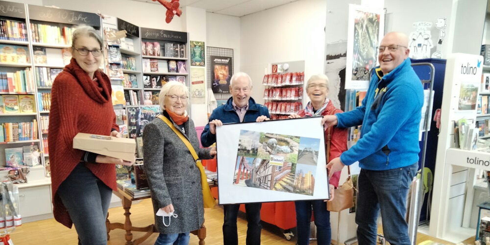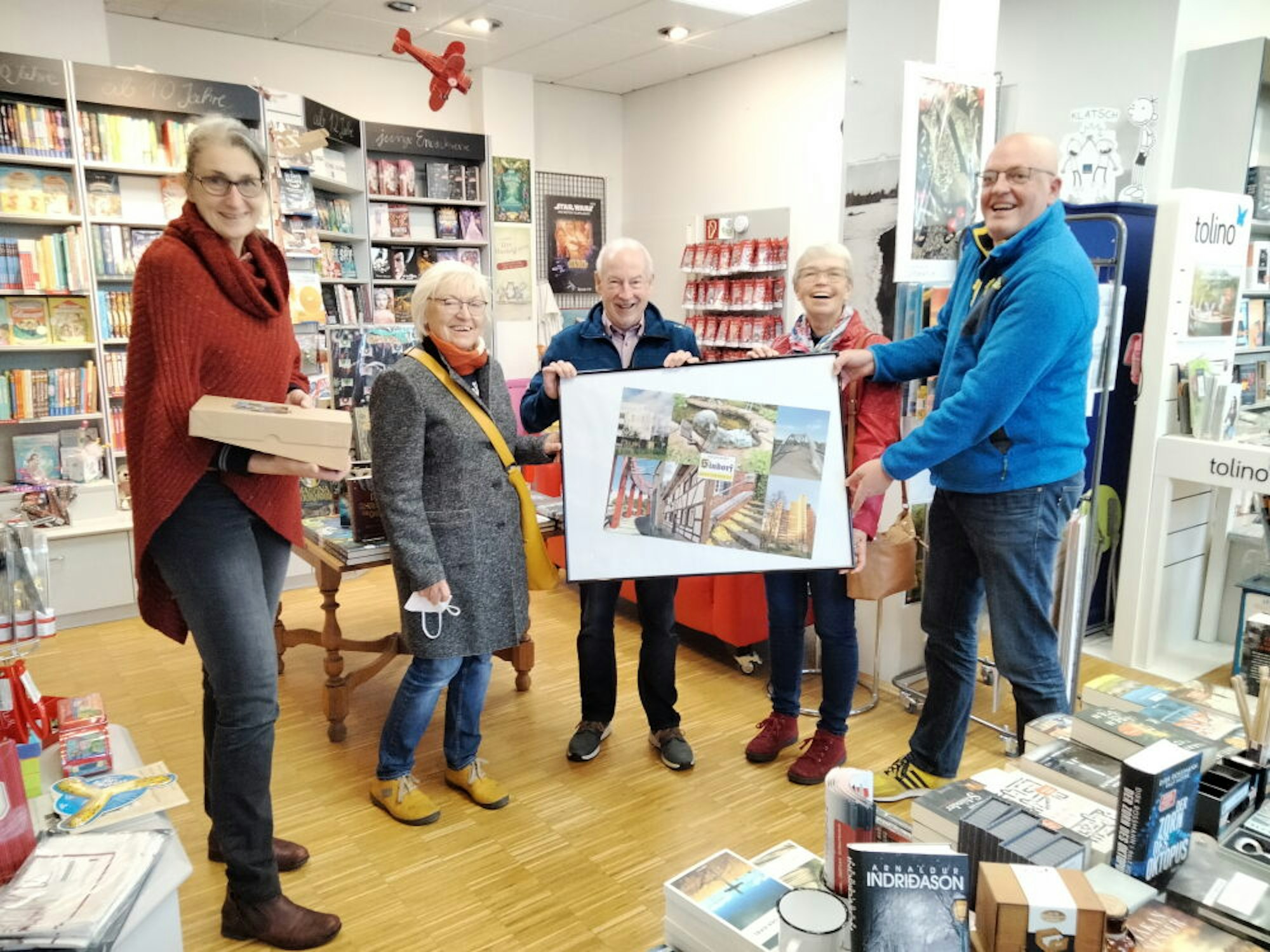 Elke Bahn (58), Inhaberin der Buchhandlung Bahn, arbeitet eng mit dem Heimatverein zusammen. In ihrer Buchhandlung sind die Postkarten nun gegen eine Spende für den Heimatverein erhältlich.