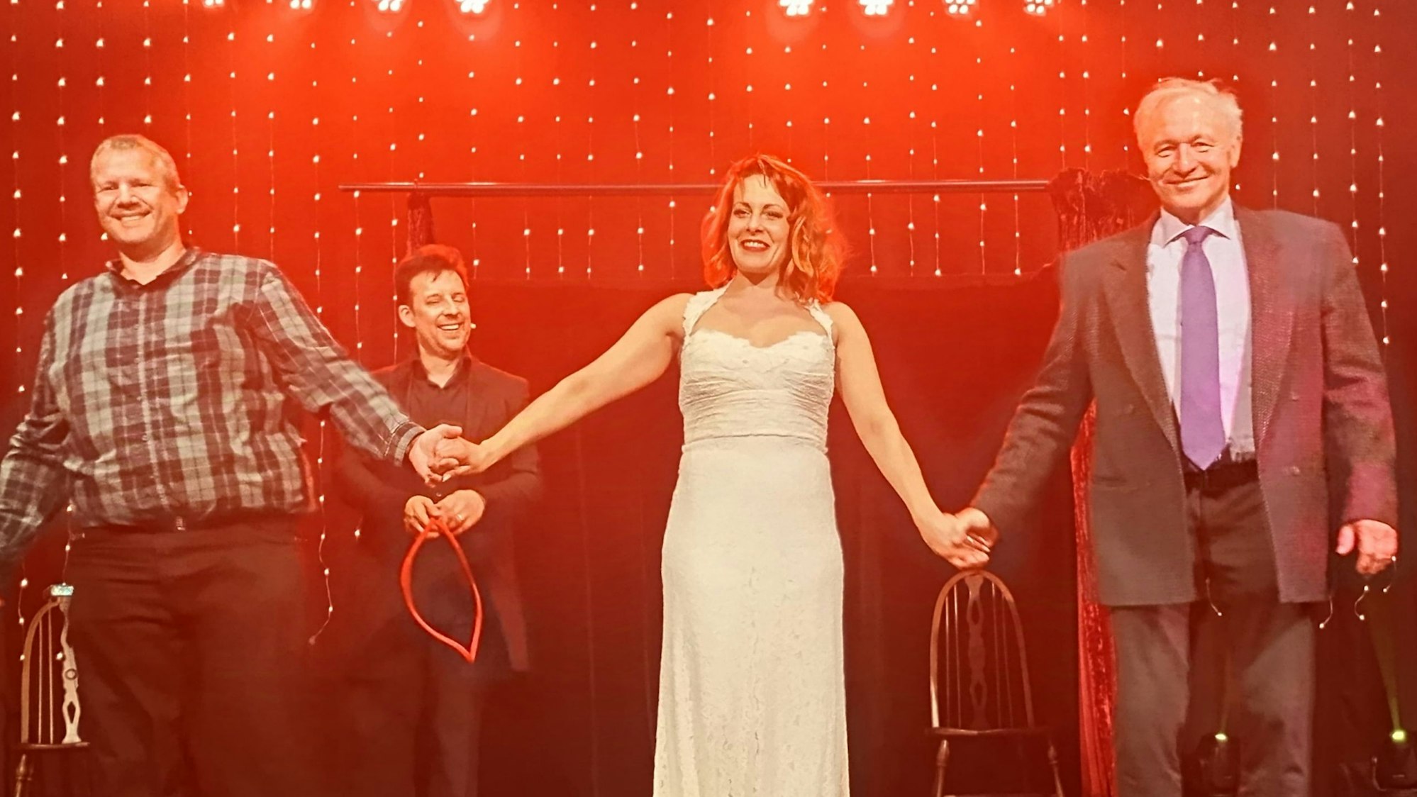 Britta Fenner-Carrera und ihre beiden „Aufpasser“ aus dem Publikum