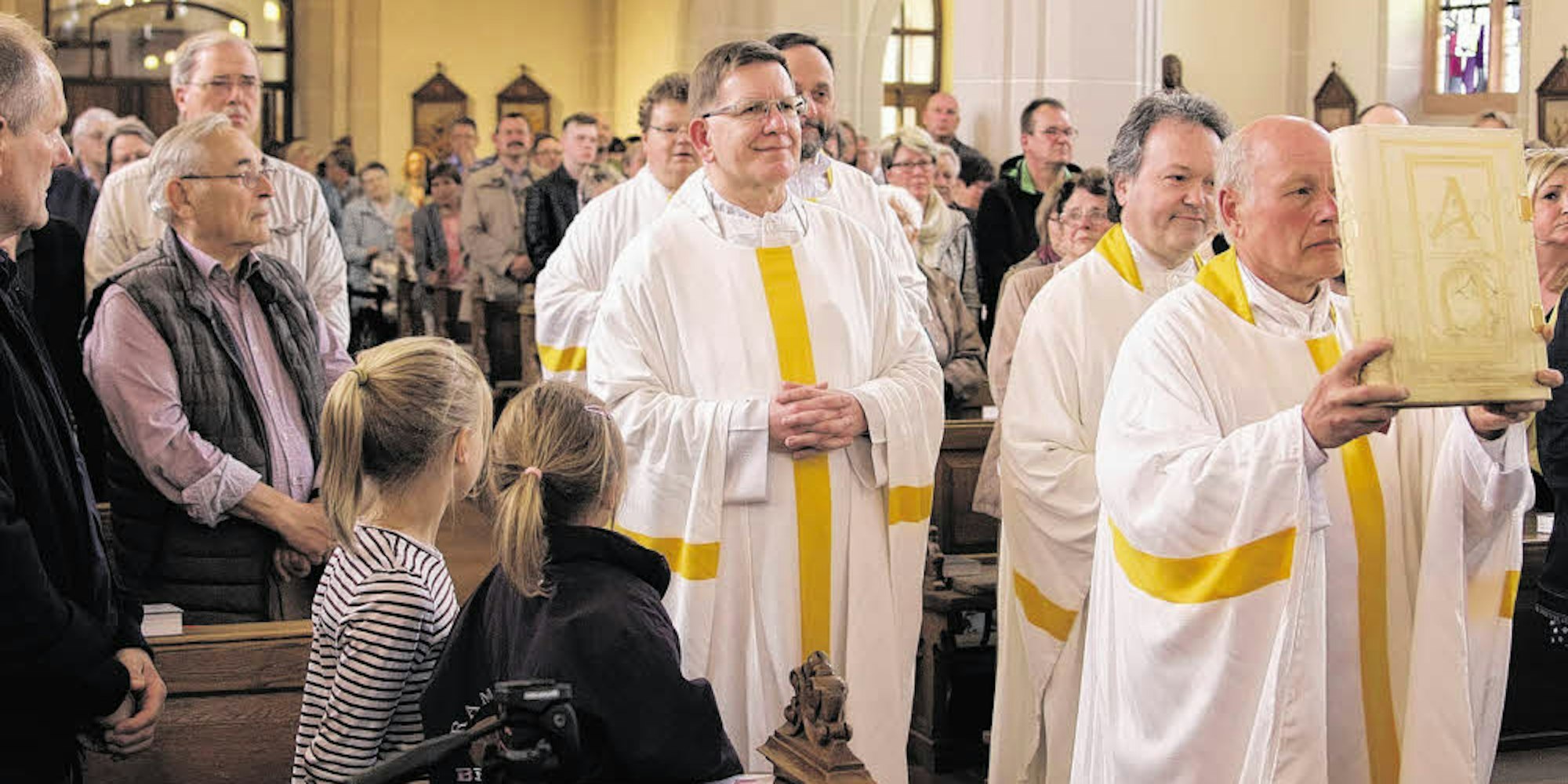 Sakrale Gegenstände wurden nach der Entwidmung feierlich aus der Kirche getragen.