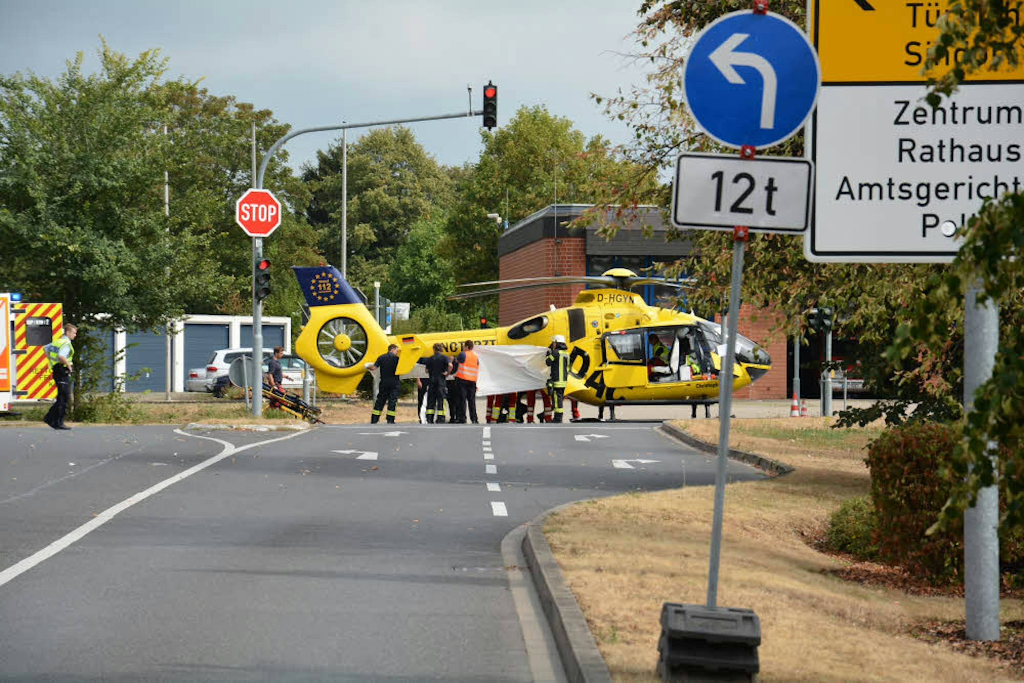 Der Mann wurde zur Polizeiwache gebracht, während sich der Notarzt und mehrere Rettungssanitäter um die beiden Verletzten kümmerten. Zwischenzeitlich wurde ein Rettungshubschrauber angefordert, der auf der von der Polizei gesperrten Sindorfer Straßen landete.