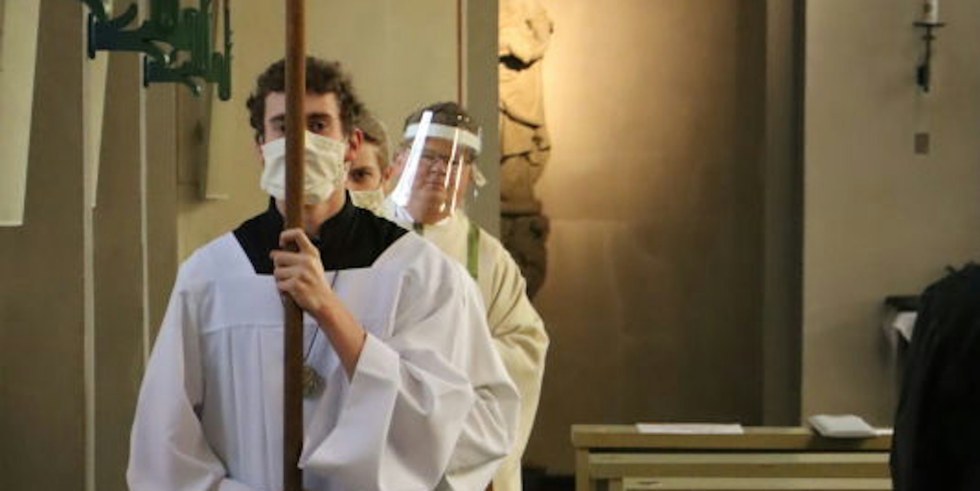Lange Warteschlangen gab es allerdings vor der Kirchenpforte nicht. Doch alle, die kamen, verband die große Vorfreude. „Ich habe die Gottesdienste sehr vermisst“, sagte Marlies Kolping. So wie die allermeisten Besucher trug auch sie einen Mundschutz. Die Festlichkeit der heiligen Messe habe die neue Situation ihr und den anderen Gottesdienstbesuchern aber nicht nehmen können.