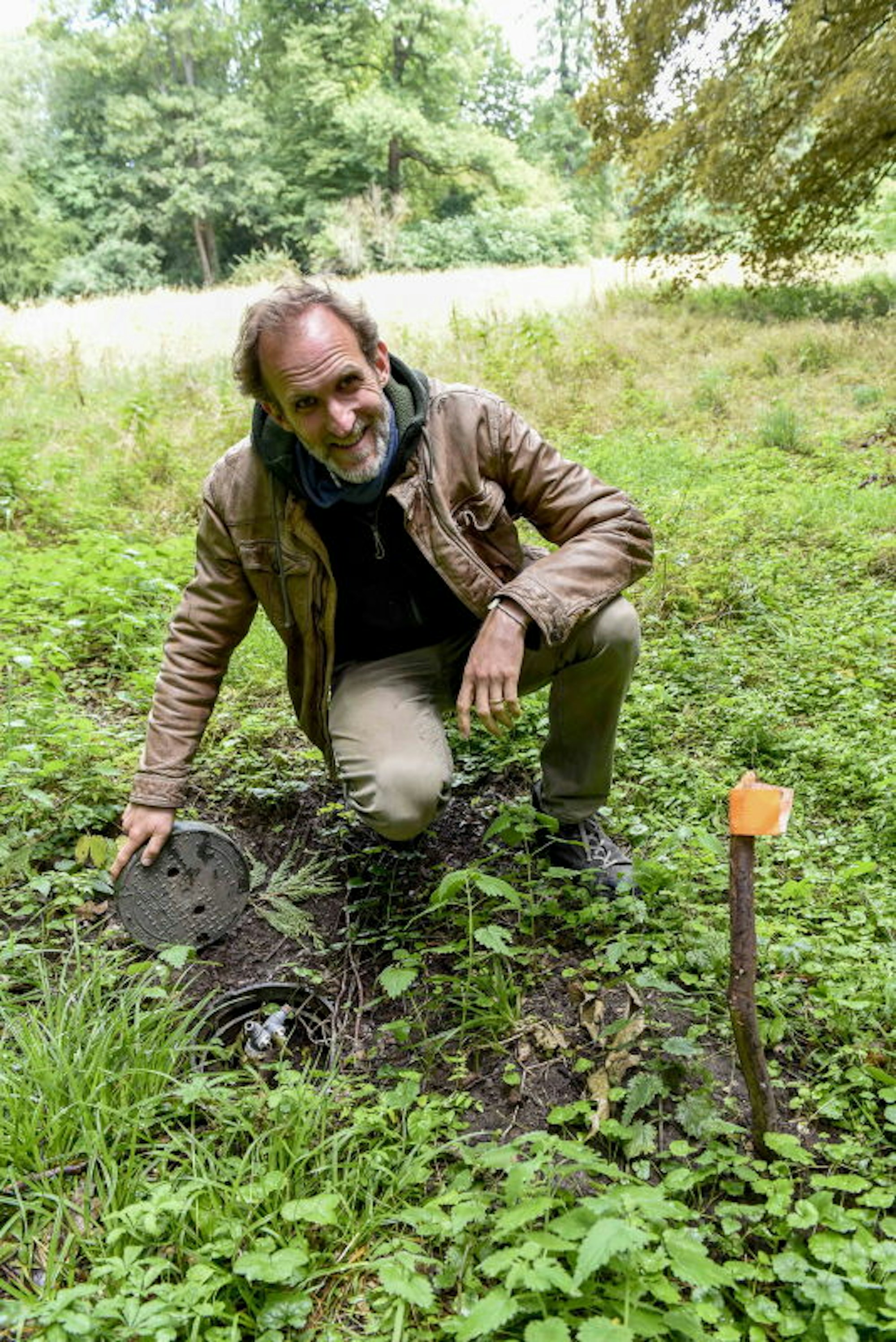 Daraufhin habe er alte Aktenordner gewälzt und wirklich einen Plan zum Rohrsystem gefunden, erzählt Severin Hoensbroech. Schon der unbekannte Verfasser des Planes, „die Handschrift meines Vaters ist es nicht“, habe aber 1988, nur wenige Jahre nach dem Bau der Anlage, schon seine Schwierigkeiten notiert, die Anschlussstücke im Parkboden wiederzufinden. Und so sei es ihm auch ergangen, sagt Severin Hoensbroech. Da sei ihm ein Nachbar, ein treuer Freund der gräflichen Schlossanlage, mit einem Metalldetektor zur Hilfe geeilt.