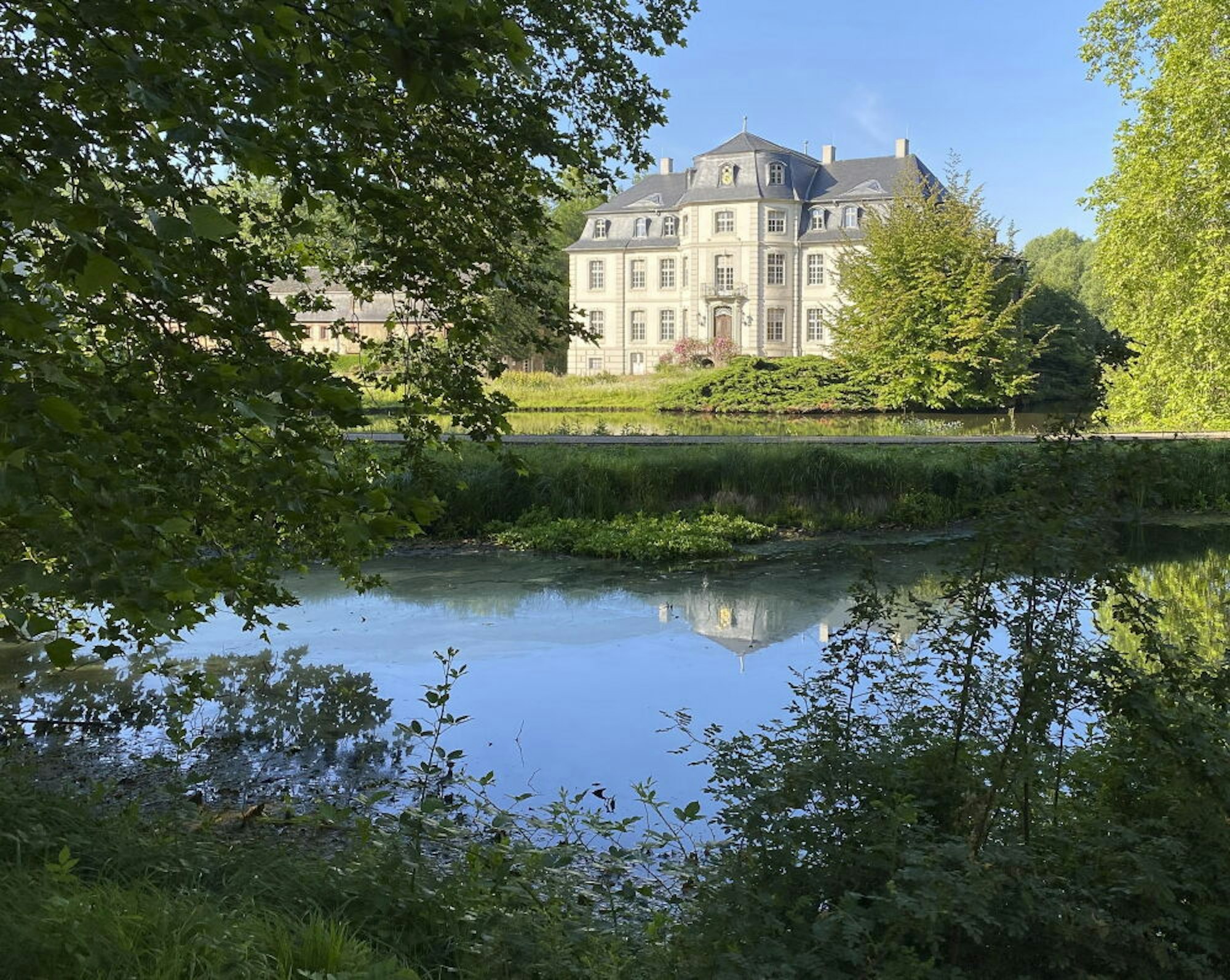 Inmitten alten Baumbestandes ist das malerische Rokokoschloss in Türnich eingebettet.
