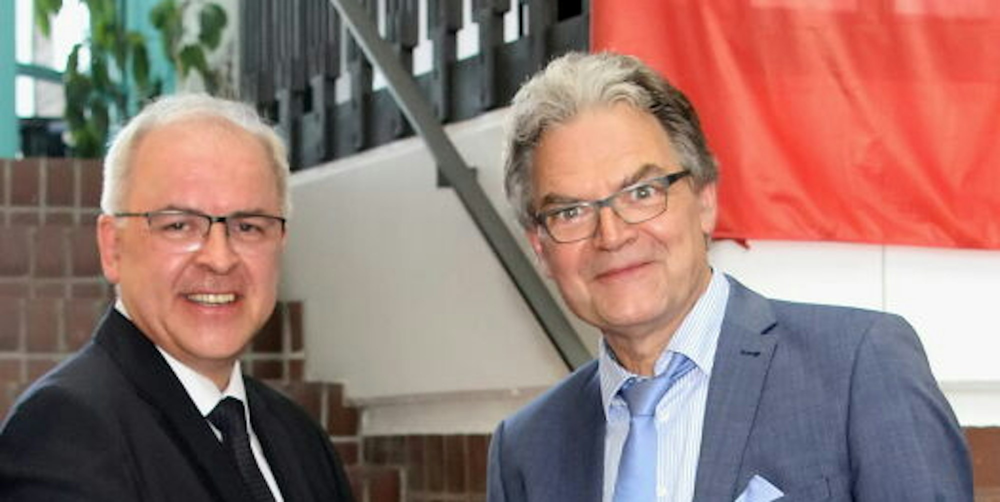 Arndt Lorenz (l.) löst Joachim Rau als Direktor des Amtsgerichts in Kerpen ab. Rau war in der Kolpingstadt insgesamt fast 30 Jahre lang als Richter tätig.