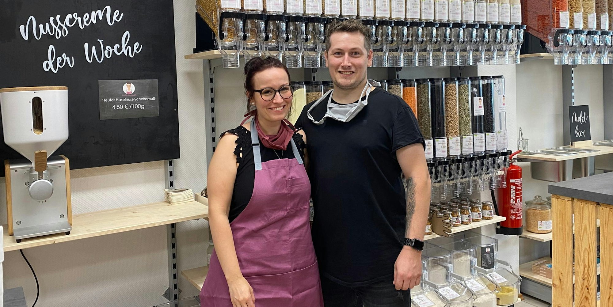 Geschäftsinhaberin Jennifer Giesen eröffnete mit ihrem Freund Oliver Theis am Samstag ihren Laden ,,Fräulein Unverpackt’’ in Sindorf.