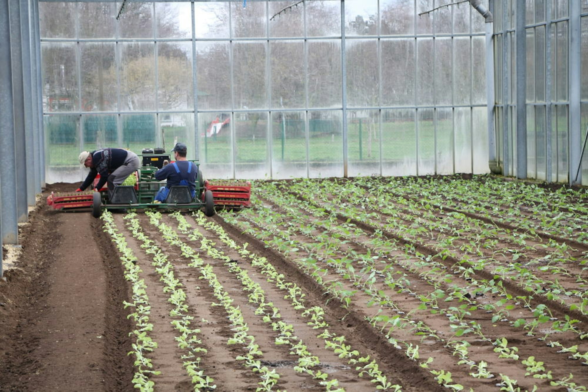 Im Gewächshaus werden schon Salat und Kohlrabi gesetzt.