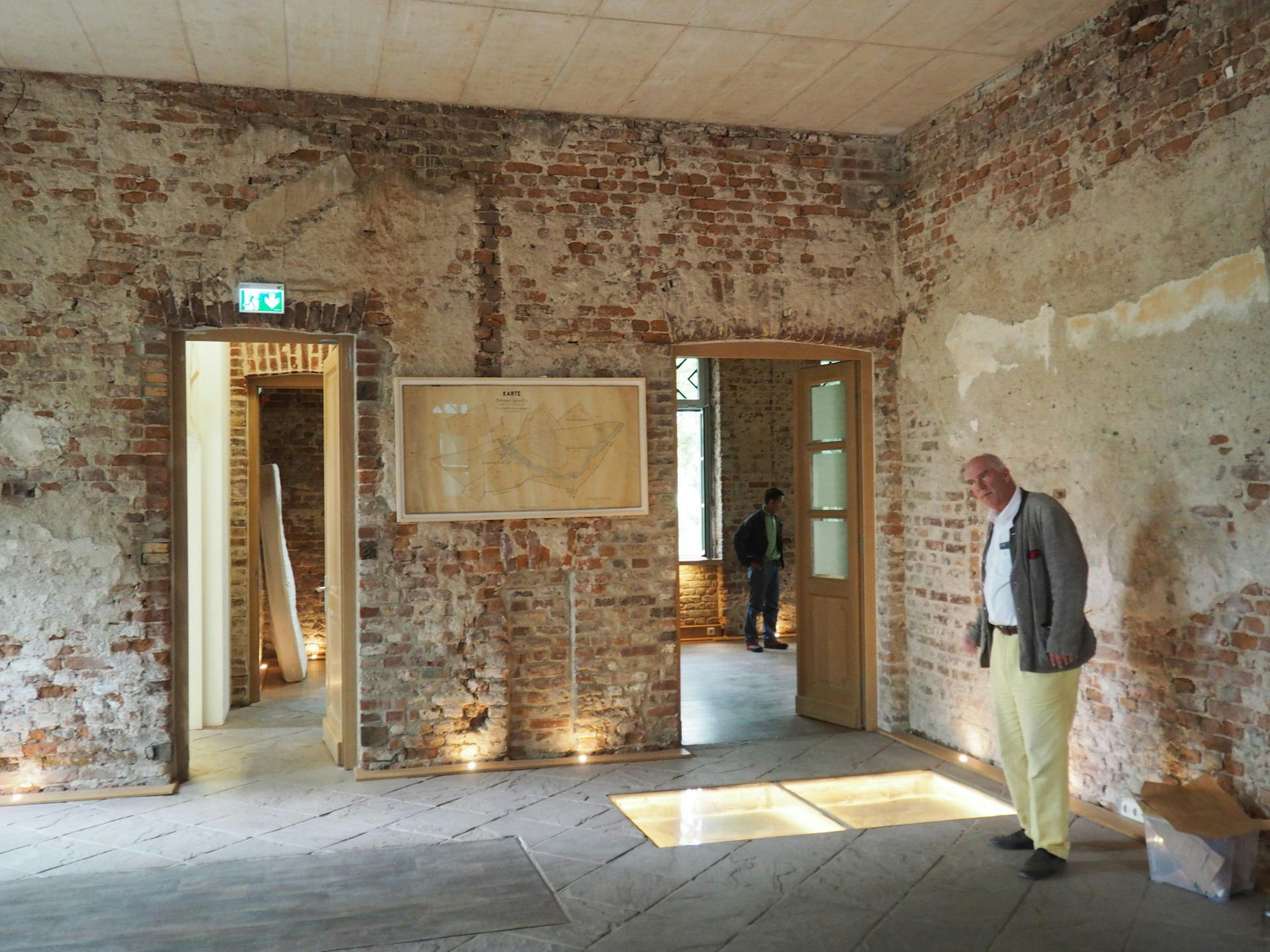 Noch vor Jahren war solch emsiges Treiben in dem denkmalgeschützten Gemäuer undenkbar. Das Dach, aber auch Fenster und Türen fehlten, die Mauern bröckelten. „Bäume wuchsen vom Erdgeschoss in die oberen Etagen“, berichtet Rüdiger Schmidt-Holzmann. Er zeigt eine Foto-Collage im einstigen Foyer, die dokumentiert, in welch ruinösem Zustand sich das verwaiste Herrenhaus vor nicht allzu langer Zeit befand.