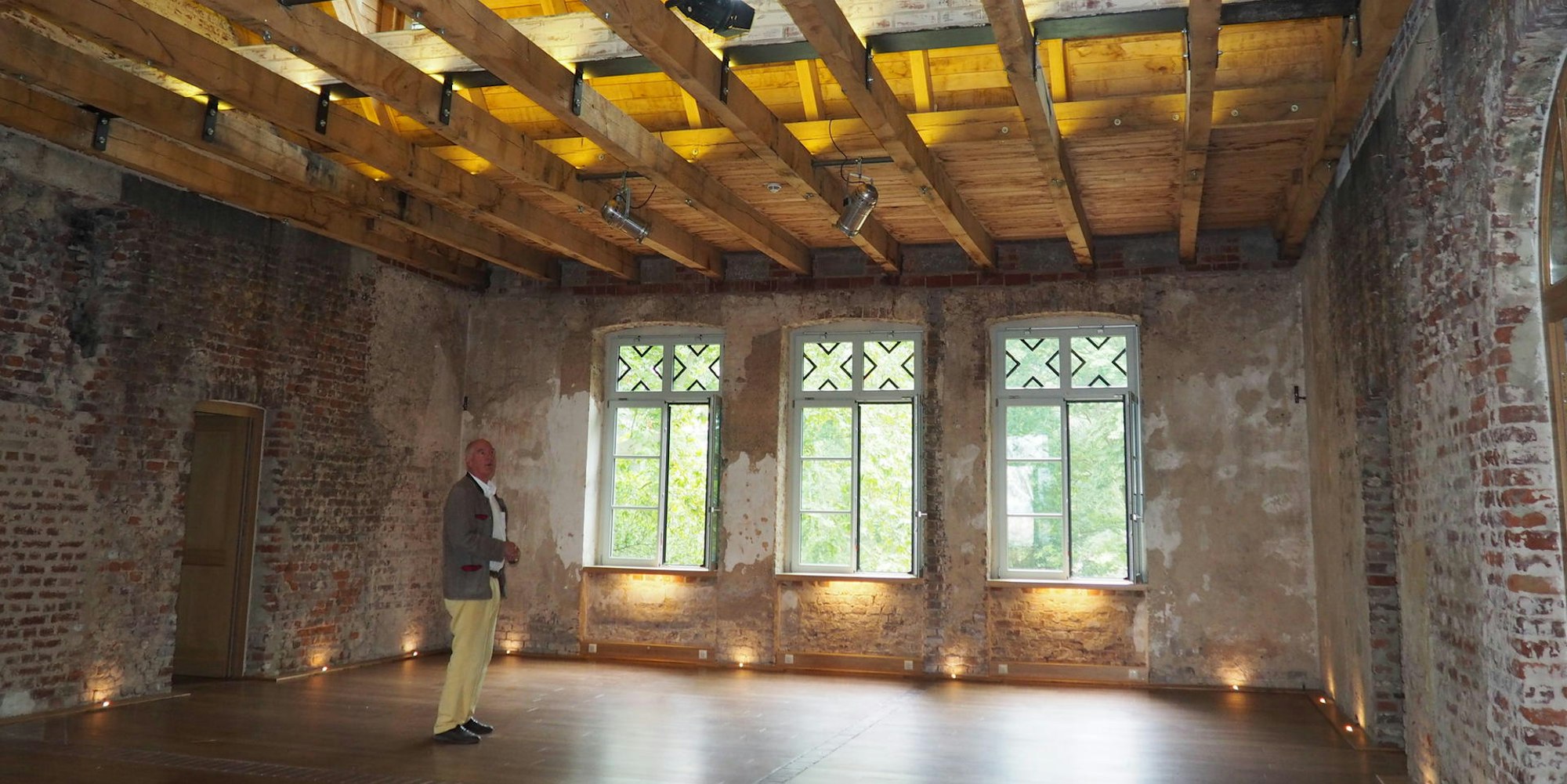 Um die Ruine vor dem Verfall zu retten, kaufte der Betriebswirt 2010 das neogotische Gebäude mitsamt dem angrenzenden, rund acht Hektar großen Landschaftspark. „Mir war bewusst, dass es von Grund auf renoviert werden muss.“ Doch das schreckte den Unternehmer nicht. „Ich habe Spaß daran, so etwas hinzukriegen.“ Die nötige Erfahrung brachte der 66-Jährige mit, dem auch das Walzwerk an der Rommerskirchener Straße gehört.