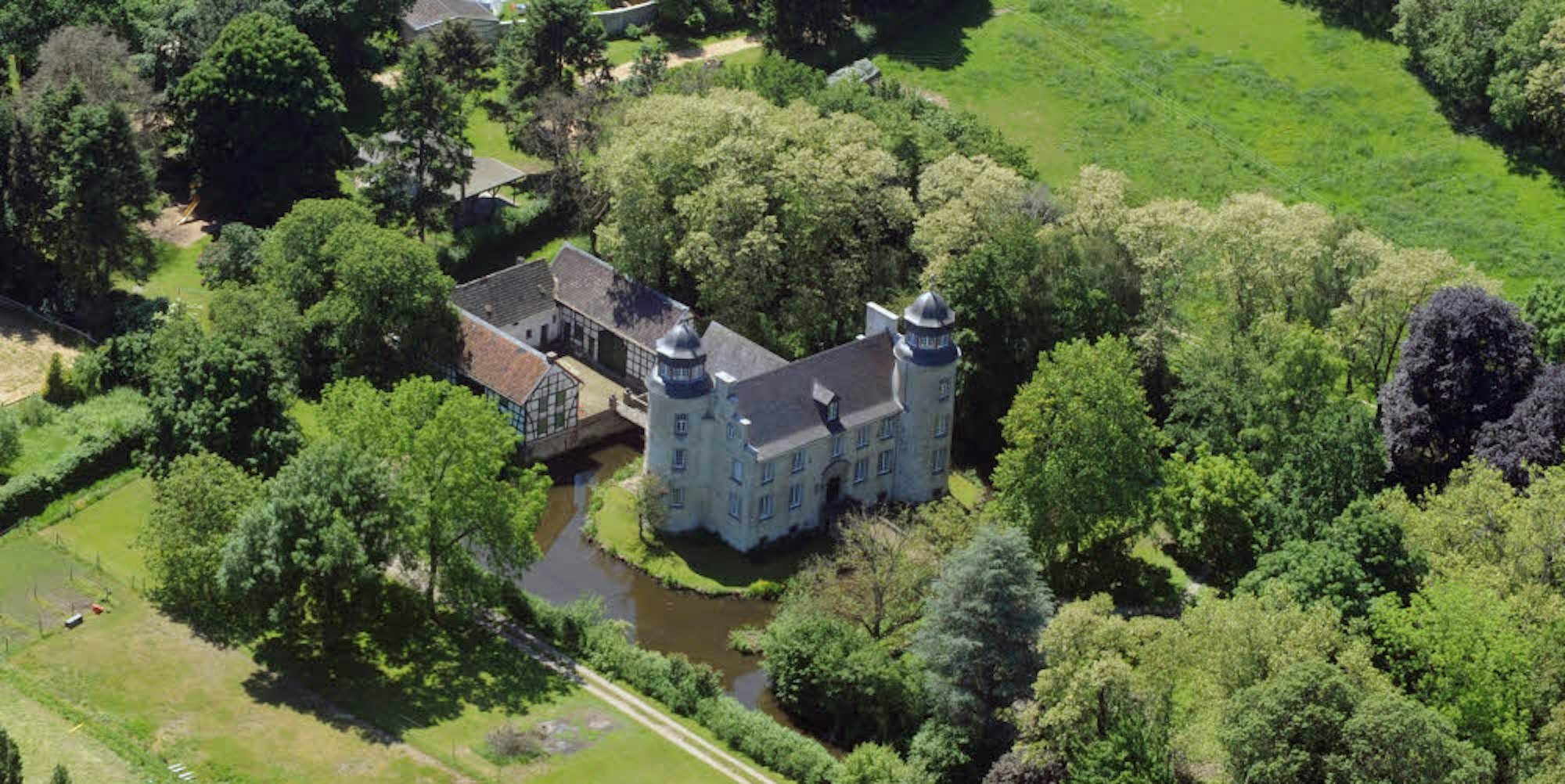 Der nahe Dikopsbach speist den Wassergraben, der rund um die Schallenburg angelegt ist. Die Burg selbst steht auf einer Insel. „Nach heftigen Regenfällen steigt auch der Wasserspiegel im Burggraben“, weiß Lennartz. Im Keller gebe es eine Stelle, bei der bei Starkregen immer ein bisschen klares Grundwasser hochgedrückt werde. Aber der Lehmboden sei gestampft und bisher sei das Wasser immer genauso schnell wieder im Boden versickert, wie es gekommen sei.