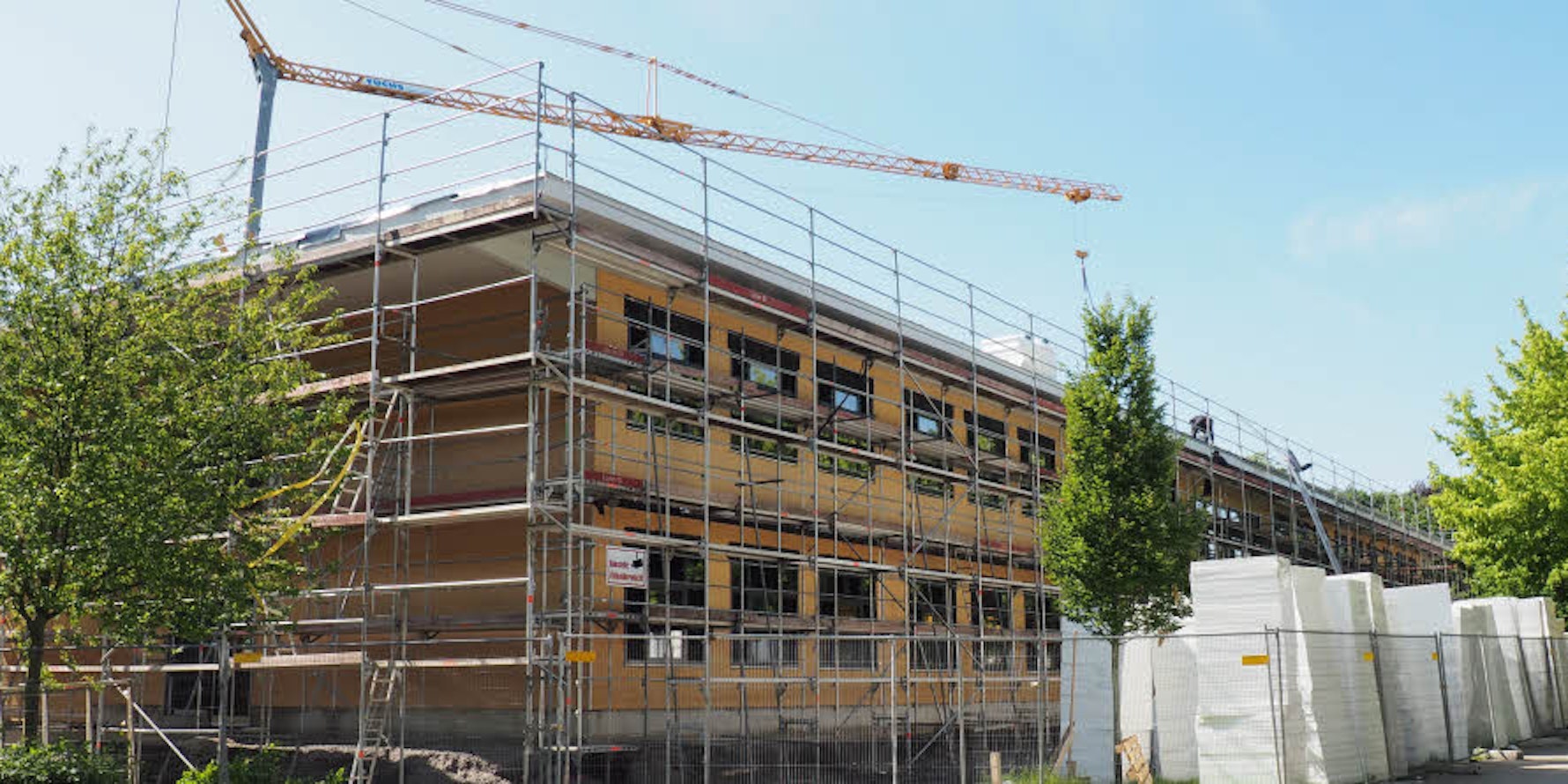 Pulheim-Brauweiler – Dämmplatten stapeln sich hinter dem Schulgebäude. Die Tischtennisplatte und der Basketballkorb stehen seit Wochen ungenutzt herum. Ein Zaun schirmt sie und ihren Nachbarn – einen Anbau in Modulbauweise – ab.
