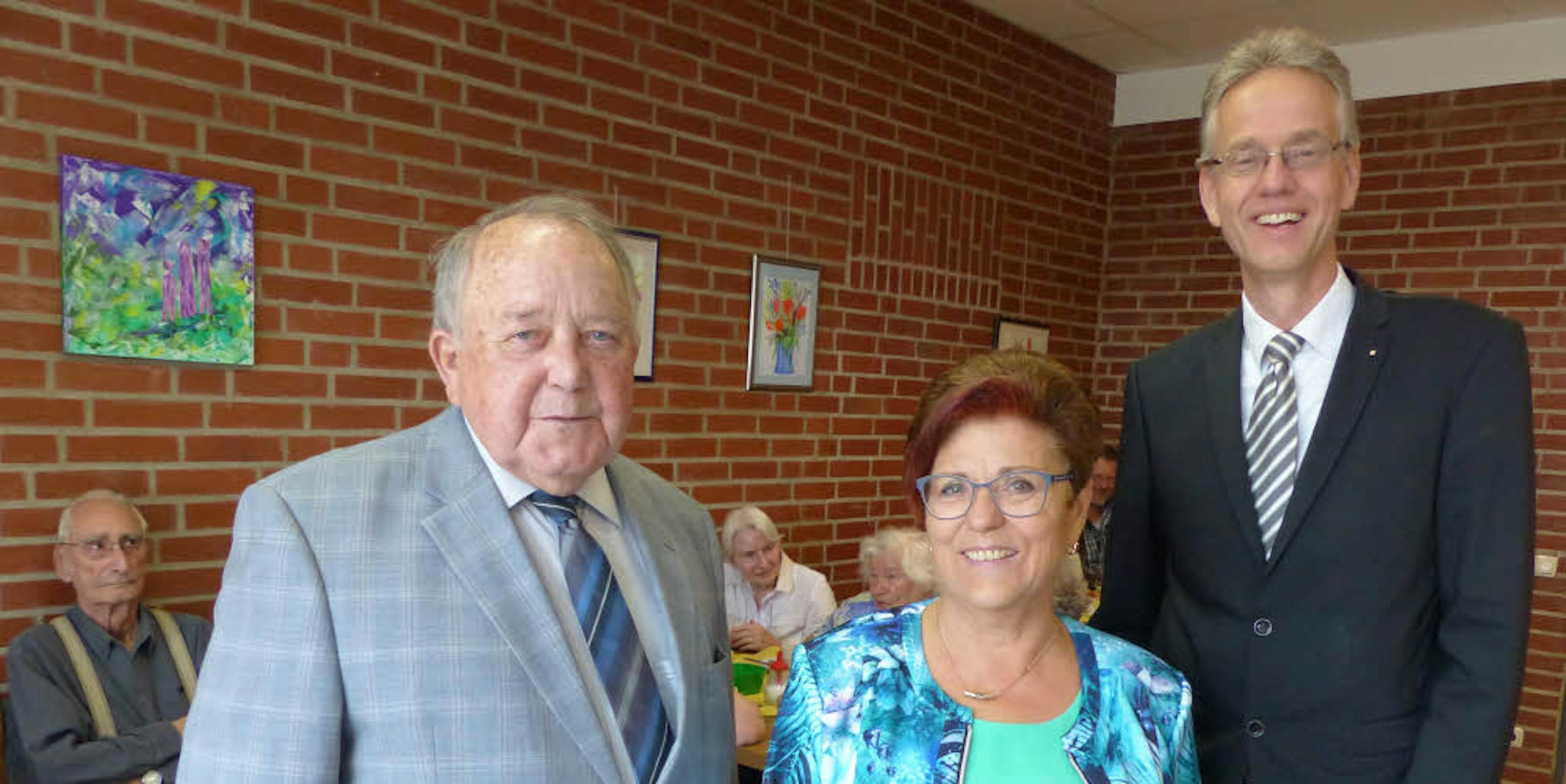 Das Awo-Demenzcafé muss vielleicht umziehen. Beate Wallraff kann mit Unterstützern wie Dr. Bernhard Worms (l.) und dem Filialdirektor der Kreissparkasse Köln, Jürgen Hübner, rechnen.