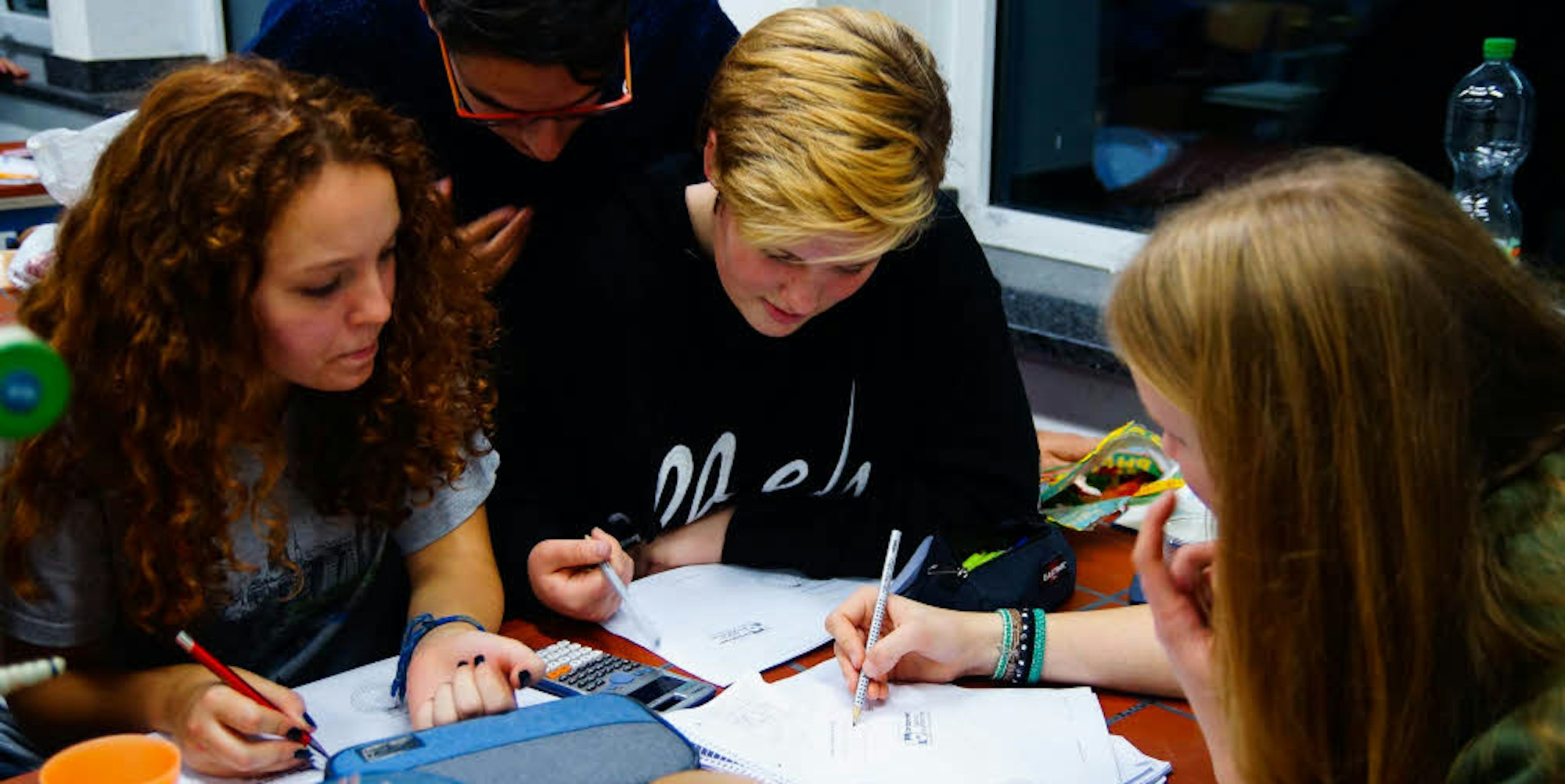 Gemeinsam zerbrechen sich Julia, Julius, Katharina und Katja (v.l.) während der langen Mathe-Nacht den Kopf.