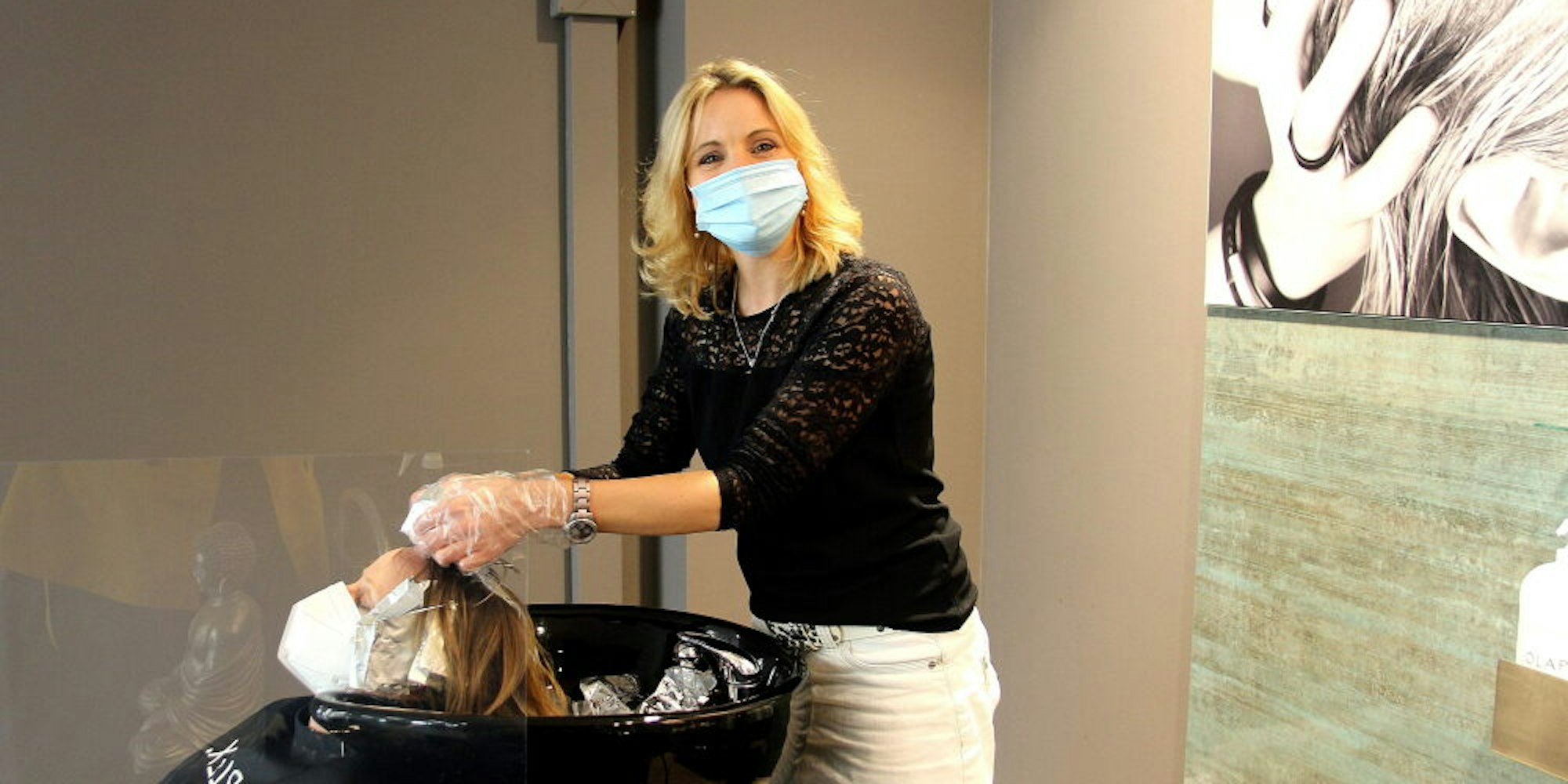 Eine Eröffnungsfeier konnte Büttgen am ersten Tag nicht veranstalten, die Corona-Hygieneregeln hielten sie und ihr Team im rund 300 Quadratmeter großen Salon strikt ein. Aber alle schritten mit Schwung zur Tat. Statt Kaffee gab es Masken, darunter aber strahlende Gesichter.