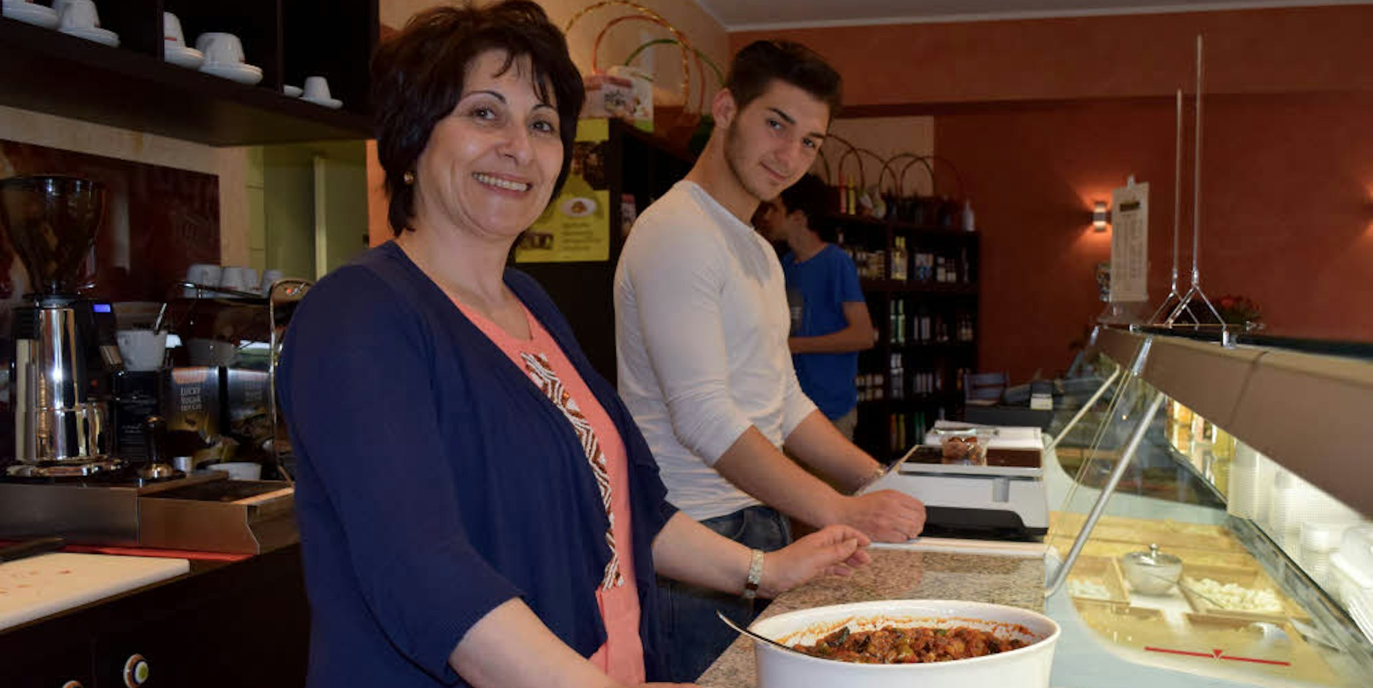 Stella und ihr Sohn Riccardo Proietto bieten in der Pulheimer Pastamanufaktur selbst gemachte Nudeln und Antipasti an.