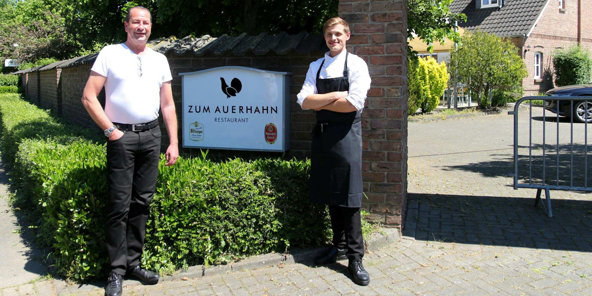 Gastwirte wie die beiden haben es nicht leicht in diesen Zeiten, der Lockdown machte auch ihnen einen Strich durch die Rechnung. Denn eigentlich sollte es im Restaurant „Zum Auerhahn“ schon Ende 2020 losgehen. Zufällig fuhr Feige vor zwei Jahren an dem 1997 erbauten Restaurant mit der großen Terrasse, das mehr als zwei Jahre leer stand, vorbei. „Ich habe mich sofort in das urige Gebäude verliebt“, sagt der Inhaber (55) des Köln-Rodenkirchener Partyservice Penthouse am Rhein.