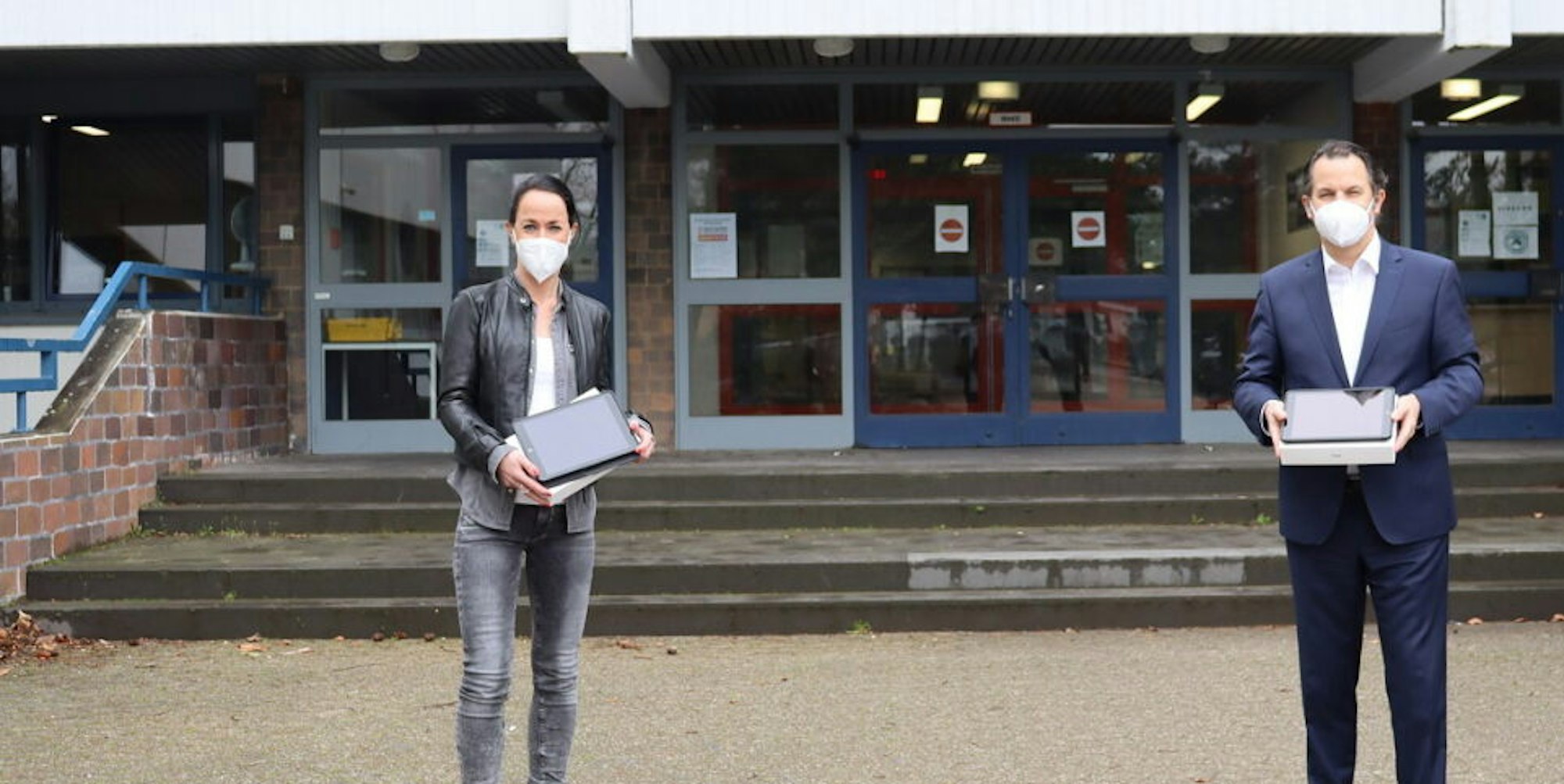 „Dabei handelt es sich um insgesamt 150 Geräte, die die Stadt bereits in den Sommerferien des vergangenen Jahres bestellt hatte. Diese Tablets sollen als Leihgeräte bei Bedarf Schülerinnen und Schülern zur Verfügung gestellt werden.“ Die Geräte, die die Stadt ebenfalls im vergangenen Jahr für die Lehrkräfte bestellt habe, sollten in der nächsten Zeit geliefert werden. Das gelte auch für weitere Leihgeräte für Schülerinnen und Schüler. „Diese erste Lieferung ist ein weiterer Schritt auf dem Weg, die Digitalisierung der Schulen in unserer Stadt voranzubringen“, sagte Bürgermeister Frank Keppeler bei der Übergabe der 28 iPads an Stefanie Bresgen. Die Schulleiterin kündigte an, dass sich das für die IT zuständige Team nun intensiv mit den Möglichkeiten der iPads und ihrer Nutzung im Unterricht beschäftigen und sie dann so schnell wie möglich zum Einsatz bringen werde. „Zunächst muss jetzt allerdings zeitnah geklärt werden, welche Schülerinnen und Schüler konkret mit diesen 28 iPads im Distanzunterricht unterstützt werden können“, verriet die Direktorin.