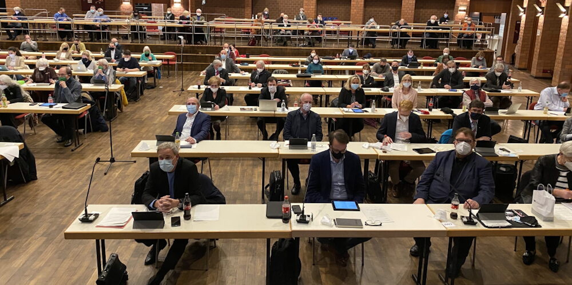 Angesichts der pandemischen Lage hätten die Stadtverordneten ein weiteres Mal die Befugnisse des Stadtrates an den Haupt- und Finanzausschuss delegieren können. Die vom nordrhein-westfälischen Landtag festgestellte „pandemische Lage von landesweiter Tragweite“ hätte dies erlaubt. Statt 65 würden dann 22 Personen – einschließlich des Bürgermeisters –, Vertreter der Stadtverwaltung sowie je nach Thema interessierte Bürger im Köster-Saal sitzen.