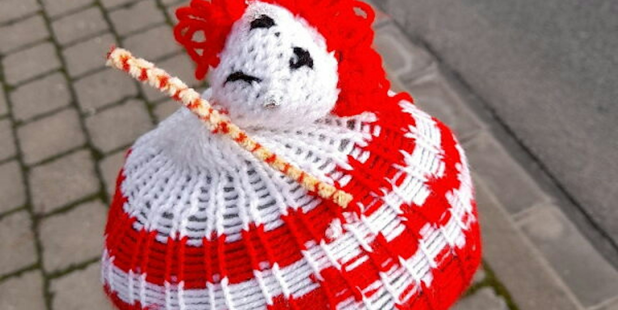 Pulheim-Stommeln – Sie sind bunt, mal blau-gelb, mal rot-weiß, gern auch grün-weiß. Sie sind an den unterschiedlichsten Stellen im Mühlenort zu finden, vor Geschäften, Kneipen, an Verkehrsinseln und Absperrungen, an der Hauptstraße, aber auch an Seitenstraßen. Doch wer die gestrickten Mützen meist zu nachtschlafender Zeit im Ort platziert, ist und bleibt ein Rätsel.