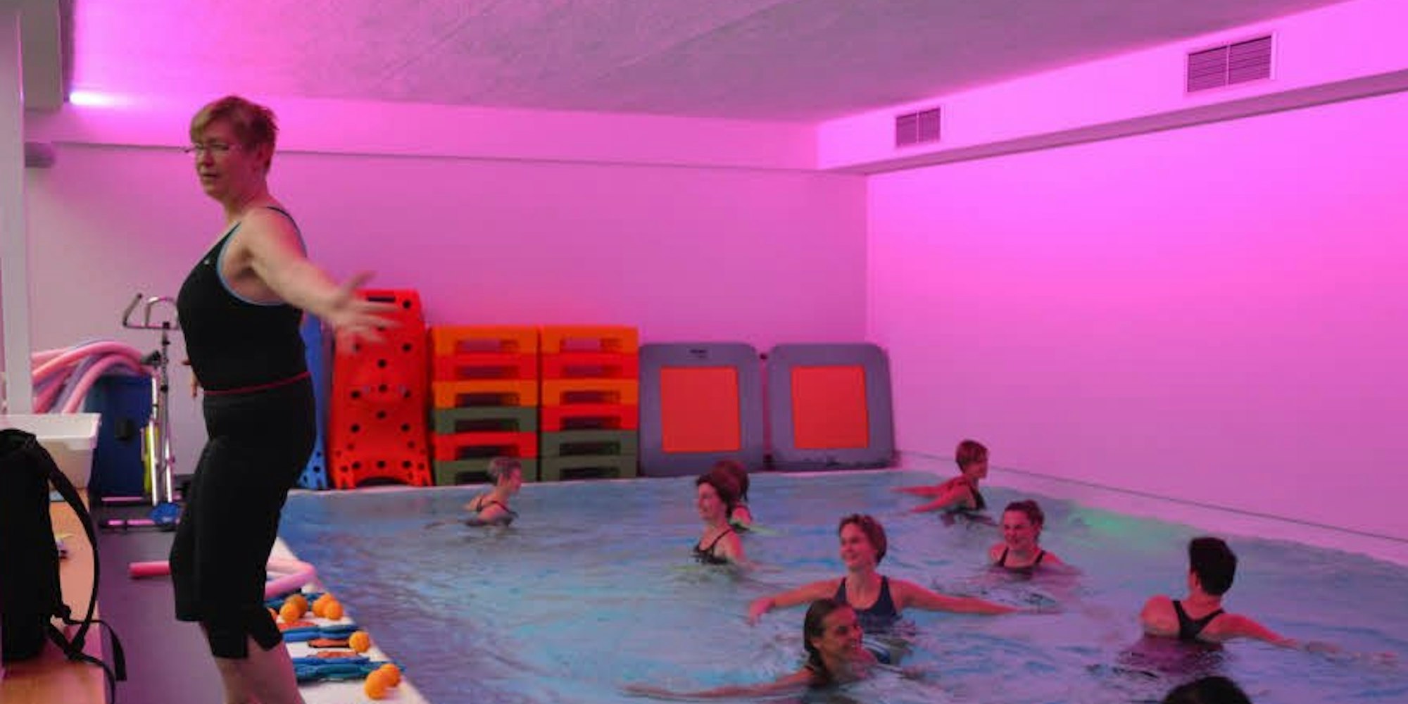 Ihr Lebenstraum hat sich für Anja Michaelsen, die sich permanent mit den anderen Speedo-Instruktoren austauscht, im Januar 2011 erfüllt: Sie fand ihr „eigenes Schwimmbad, wo ich all die Konzepte, die ich im Kopf habe, umsetzen kann“. Fast eineinhalb Jahr sind mit Planung und Umbau ins Land gegangen. Seit dem 1. August 2013 laufen im wohltemperierten Salzwasser der „Walzwerkwelle“ Dutzende Kurse. Auch ein Zirkel-Training auf Laufband, Trampolin, Fahrrad und mit kleineren Geräten ist im Angebot. „Es läuft gut“, sagt Anja Michaelsen, die mit fünf weiteren Kursleiterinnen den Laden schmeißt.