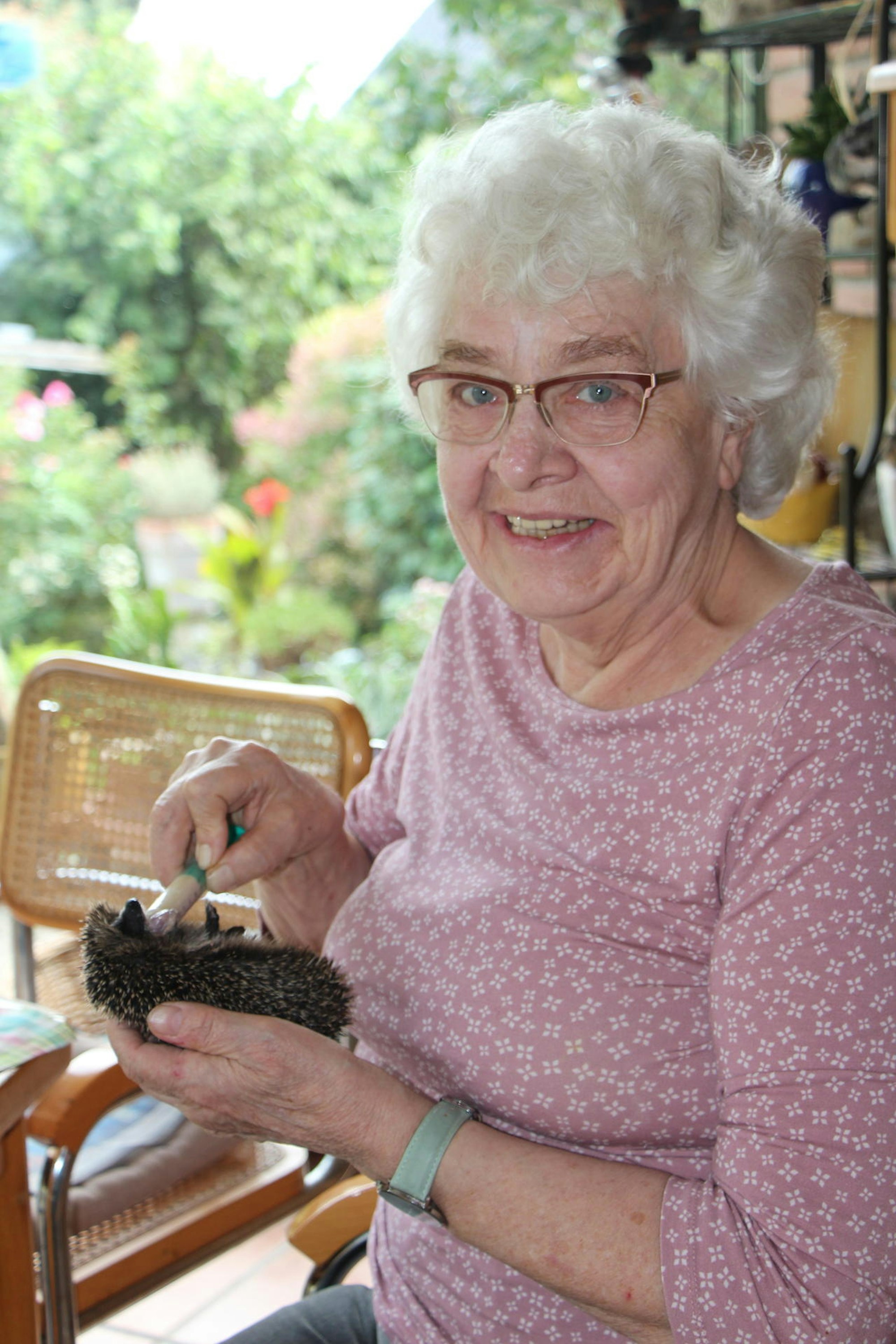 Sie nimmt kranke und schwache Igel auf, um sie aufzupäppeln.