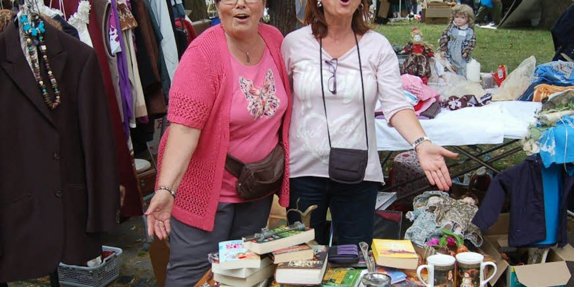 „Alles ein Euro“, rufen Gertrud und Birgit Rubach (v.l.). Sie verkauften Teile des Hausstands, weil ein Umzug ansteht.