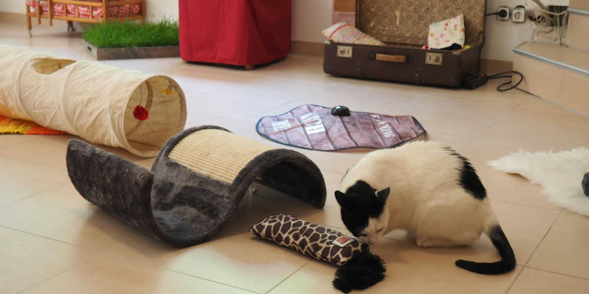 Nur fürs Foto inspiziert Mimi schonmal die Katzenpension, die in der nächsten Woche eröffnet wird. Für Carmen Hoffmann geht ein Herzenswunsch in Erfüllung.