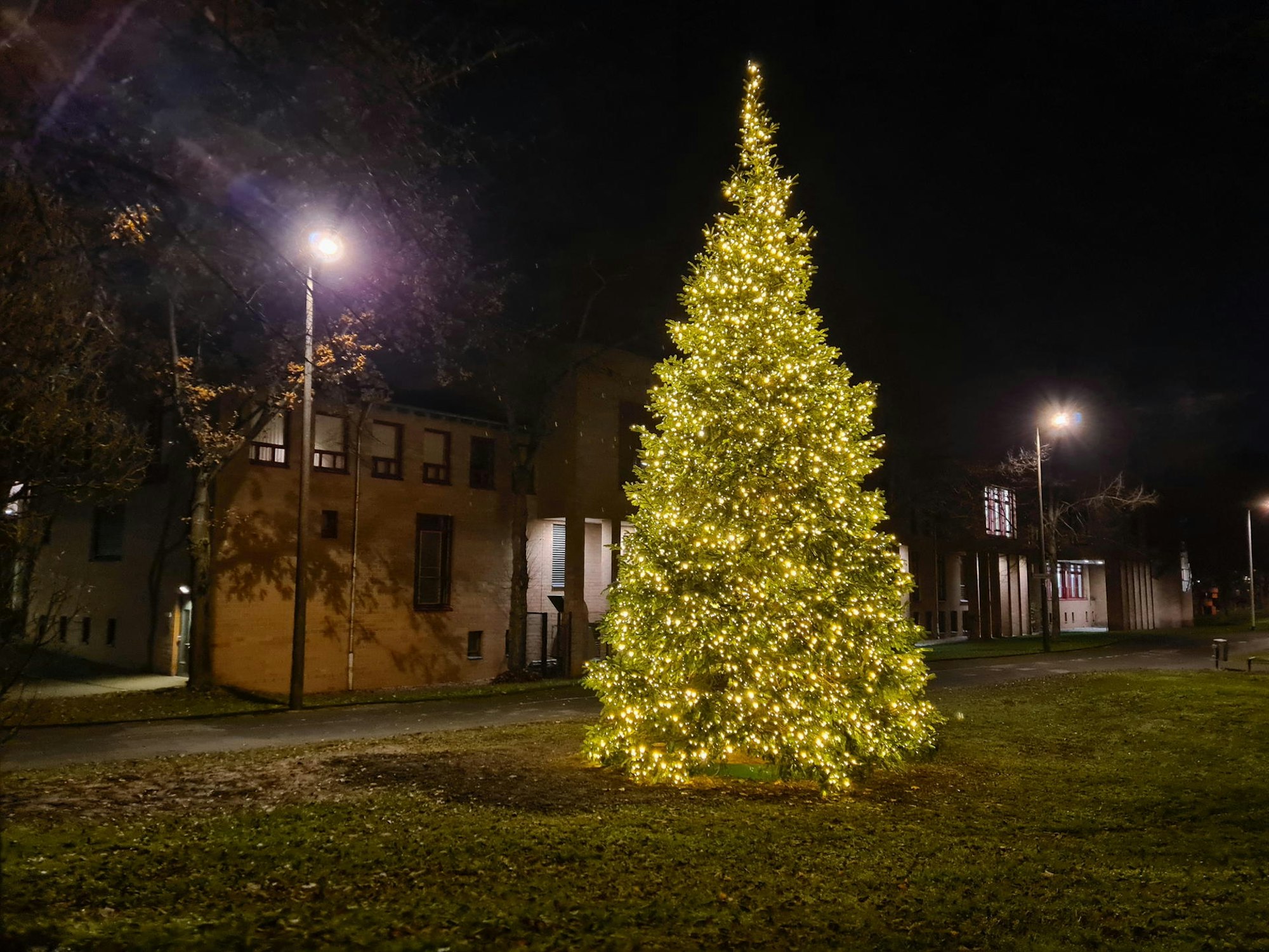 Rhein-Erft-Kreis – Kein Lichterglanz, keine Weihnachtsstimmung: Splitterfasernackt steht die acht Meter hohe Nordmanntanne vor dem Kreishaus. Vor einem Jahr noch strahlte sie gülden dank Lichterketten und spendete im Auftrag des Landrats Trost in den düsteren Zeiten der Pandemie. Schmucke 10.000 Euro hatte sich der Kreis den Hoffnungsschimmer-Baum kosten lassen, klimaneutral per Lastwagen aus dem Emsland an die Erft geholt. Ein Licht in der Dunkelheit.
