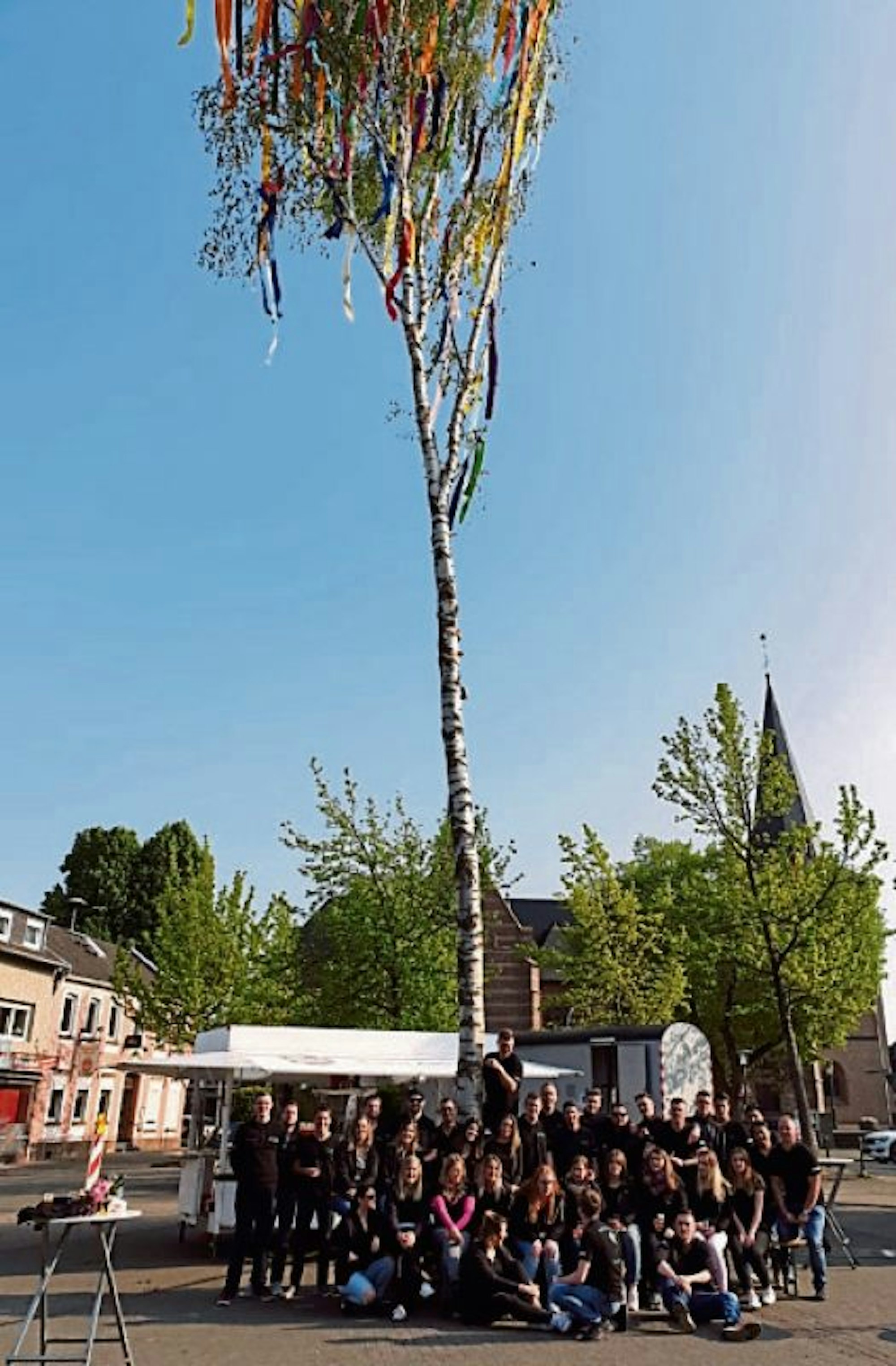 In Bergheim-Glessen steht nach Aussage von Christian Schmitz, Geschäftsführer der Maigesellschaft, traditionell „der höchste Maibaum im Rhein-Erft-Kreis“. Statt an eine 30 Meter hohe Fichte werden die bunten Bänder in diesem Jahr an eine 15 Meter hohe Birke geknüpft. „Für den großen Baum bräuchten wir mehr Leute als zurzeit erlaubt sind“, bedauert Schmitz.