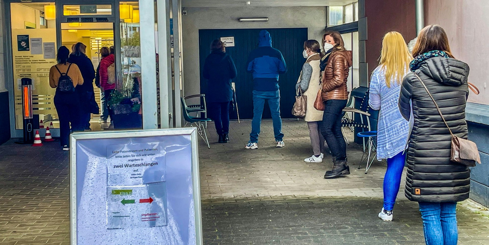 In der Brühler Hausarzt-Praxis von Dr. Astrid Lueg und Dorothea Funke wollen sich Bürger impfen lassen.