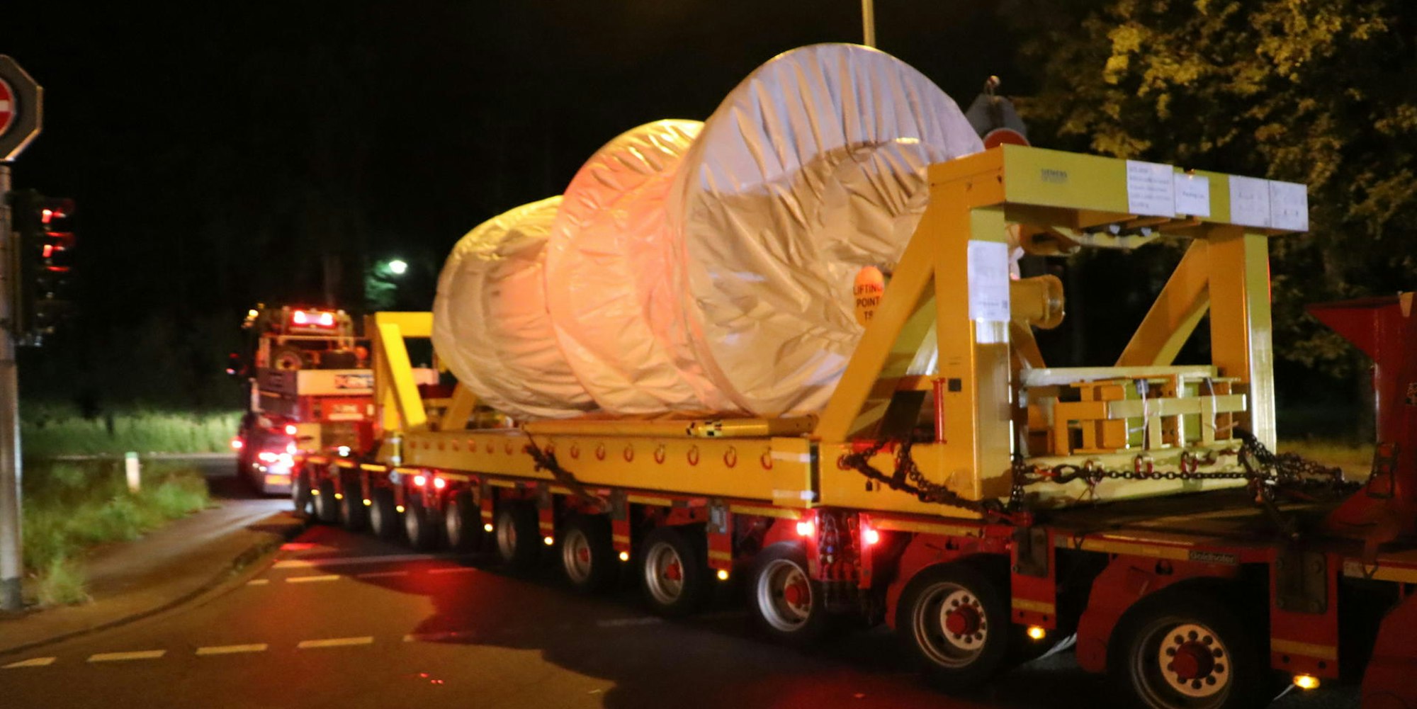 Schwertransport in der Nacht200-Tonnen-Rotor kommt nach Hürth