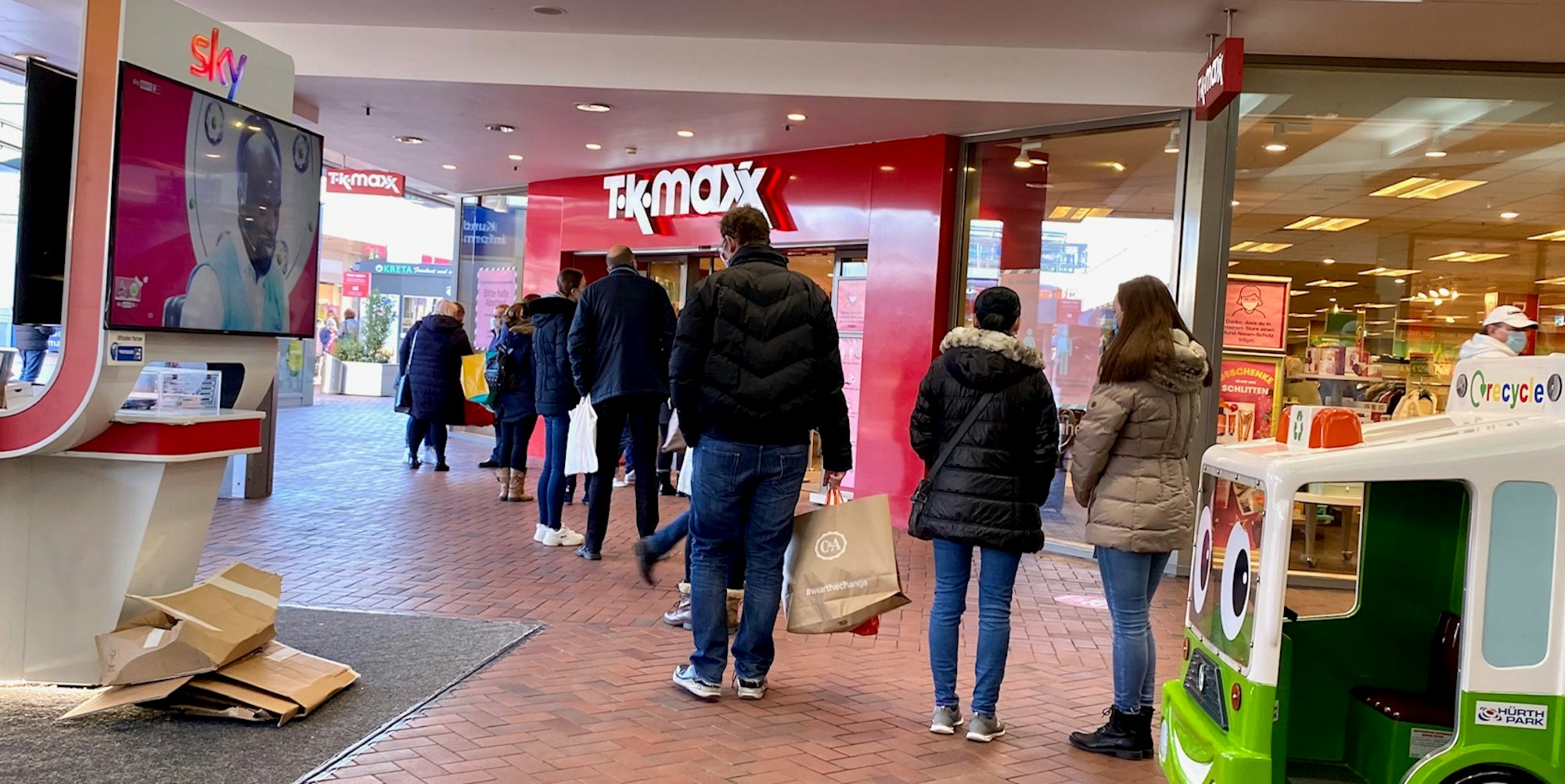 Vor manchen Geschäften im Hürth-Park standen die Kunden in der Schlange.