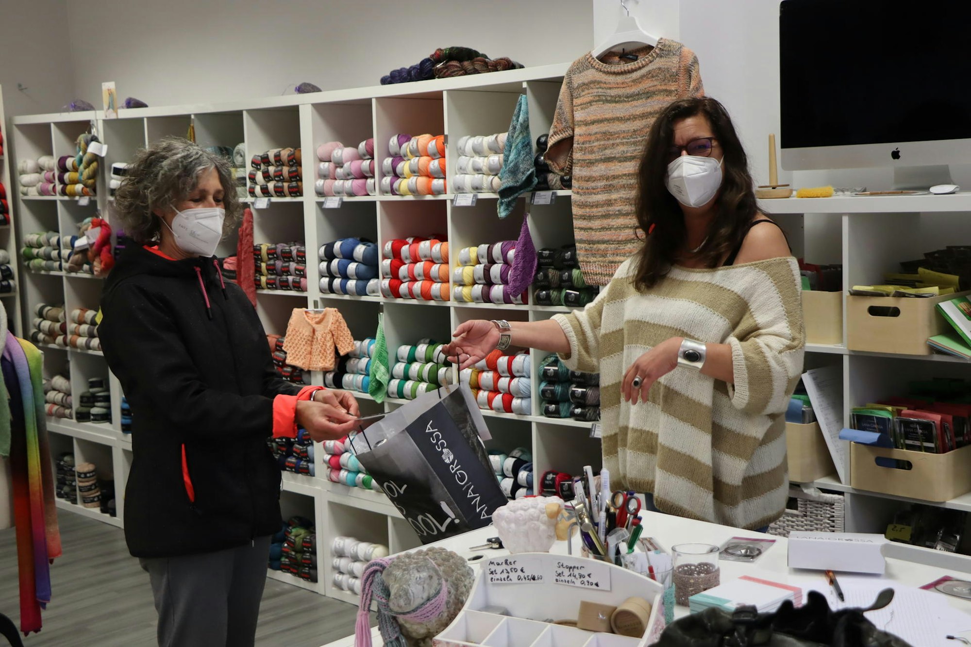 Annette Osterleander freute sich, Kundinnen in ihrem Fachgeschäft „Wollabella“ begrüßen zu können.