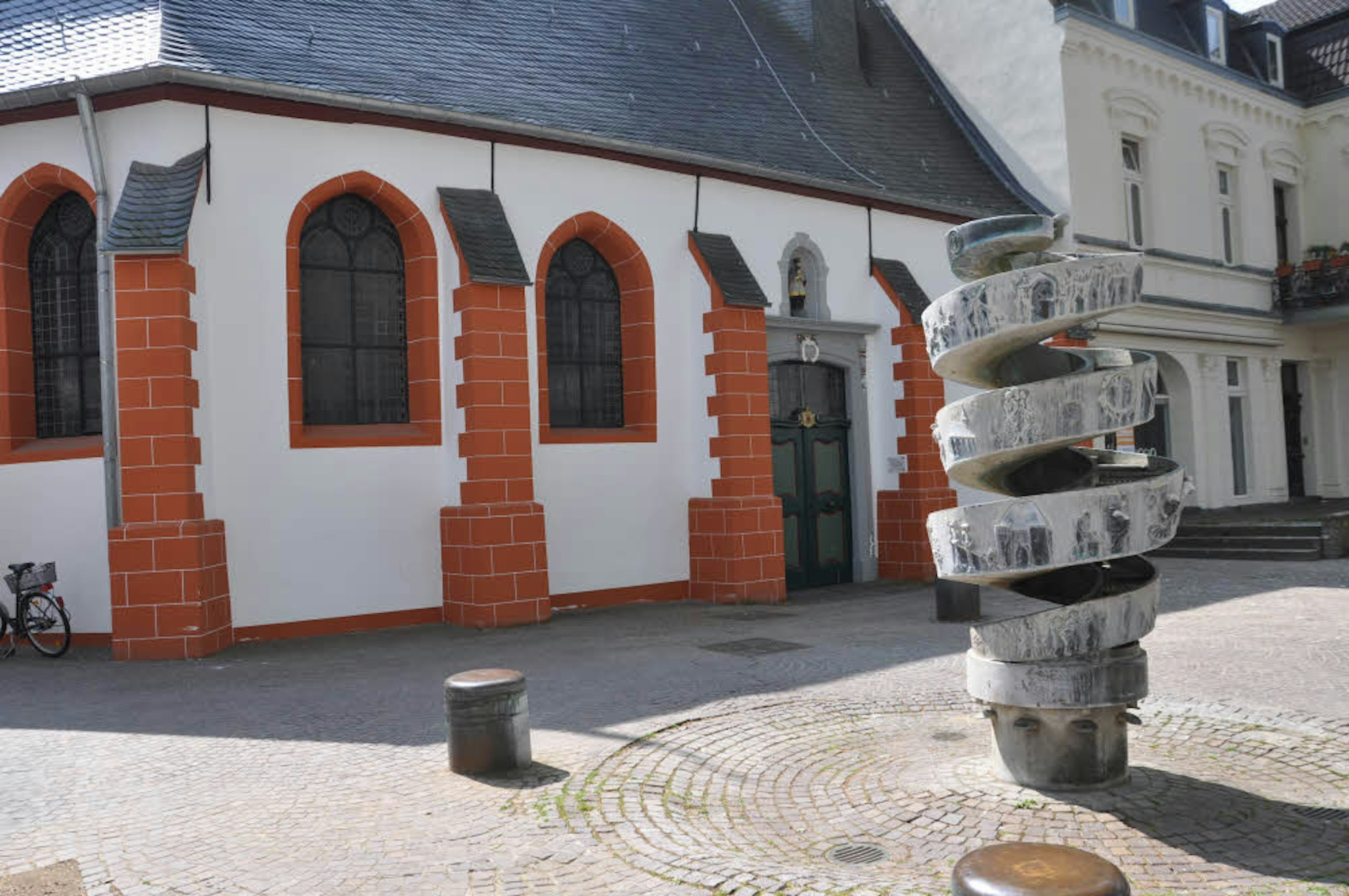 Auf dem Kerpener Stiftsplatz wertet der Brunnen das Ambiente im Schatten der St.-Martinus-Kirche auf.