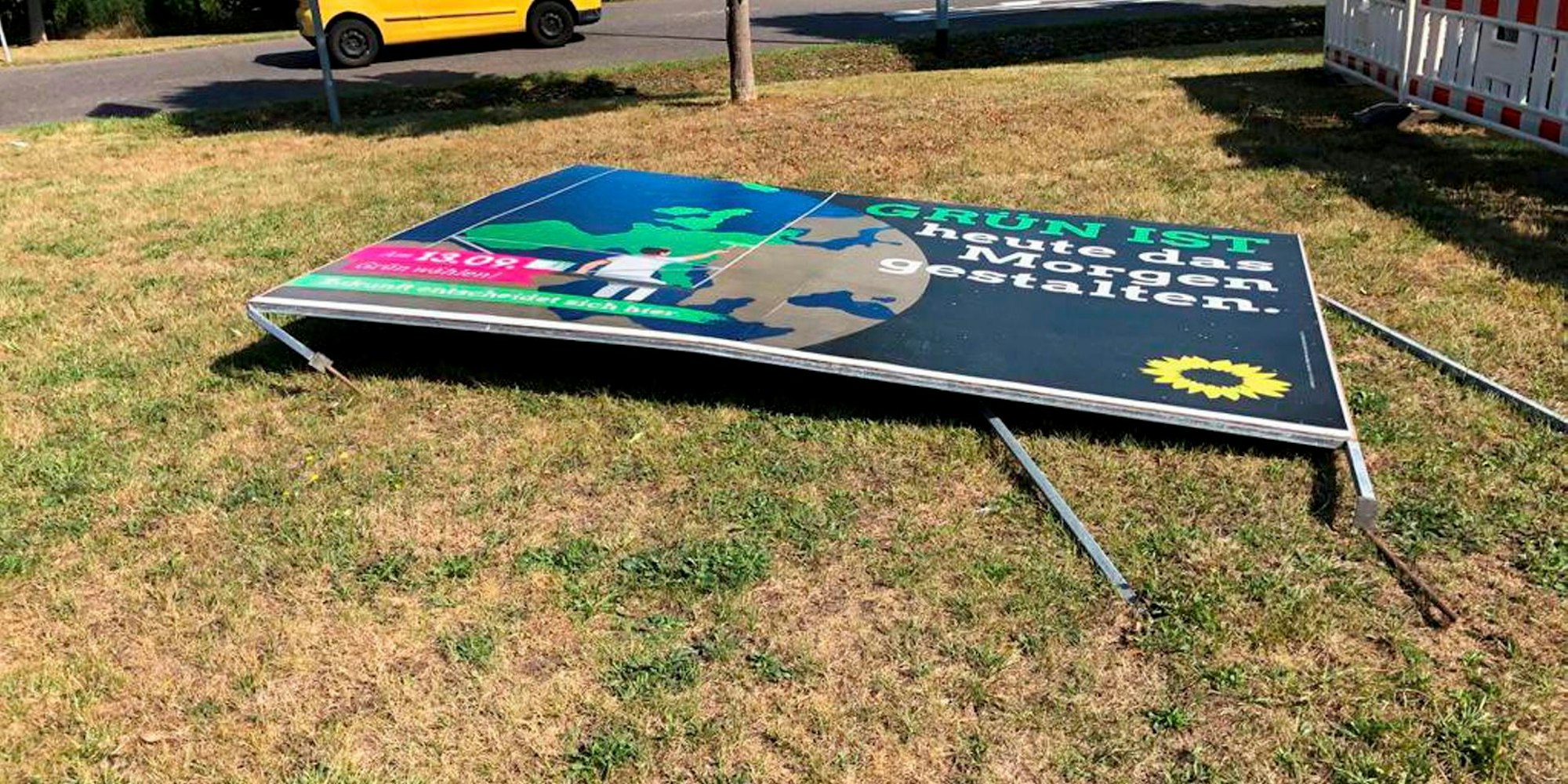 Eine Plakatwand der Grünen in Bergheim-Zieverich wurde umgerissen.