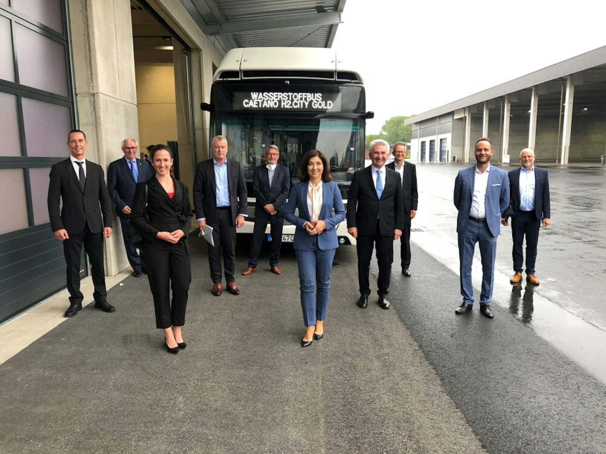 Mit grünem Wasserstoff sollen in Kerpen Busse und Lkw betankt werden. Andreas Pinkwart sah sich das Projekt an.